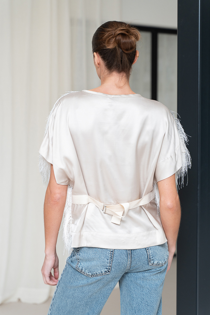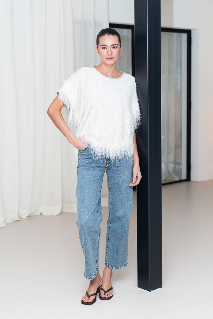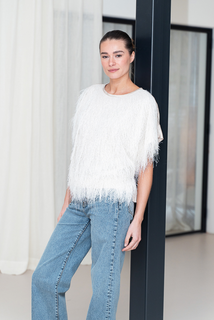 Deze 8PM Bogota fringe top is een echte style secret. Dit toffe fringe top is natuurlijk perfect voor een zomers feestje. Kun je heel chique dragen met een pantalon, maar is ook tof op een jeans. Natuurlijk ook te dragen op het bijpassende rokje. De top valt wat ruimer en is aan de achterkant te tailleren met een verstelbare band.