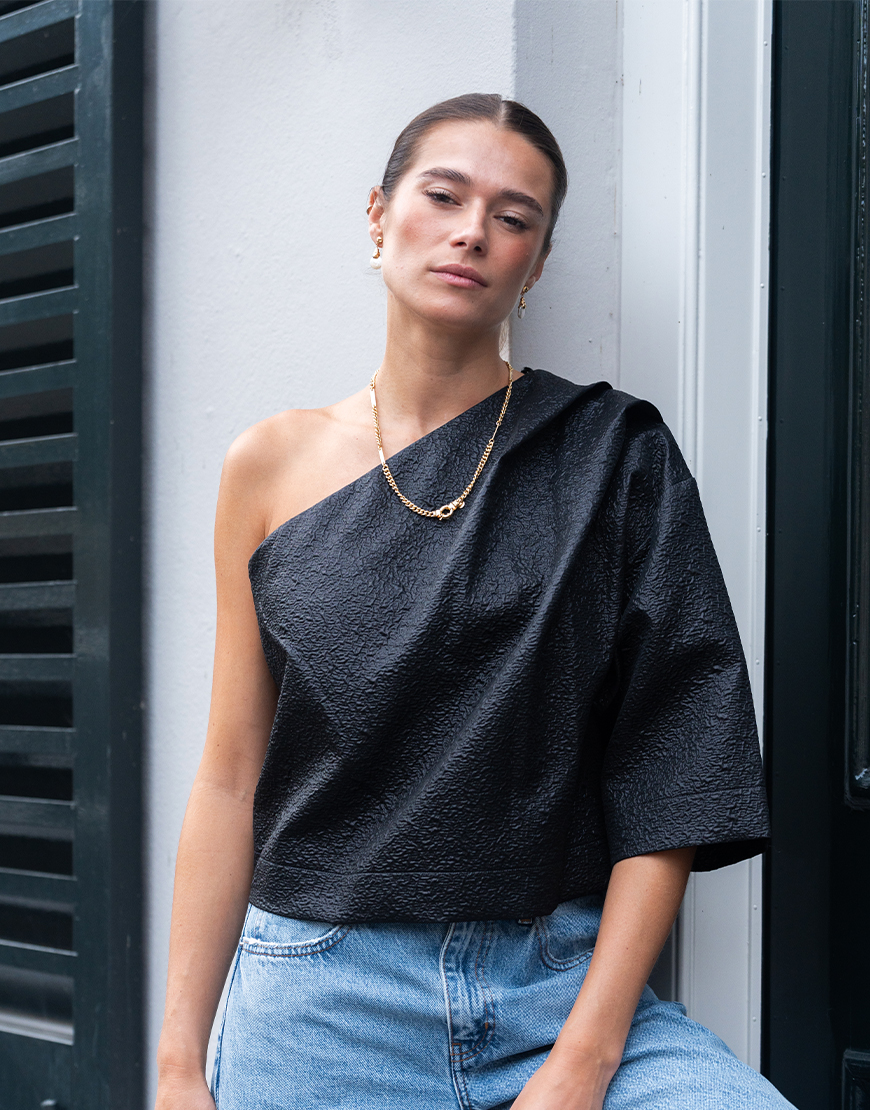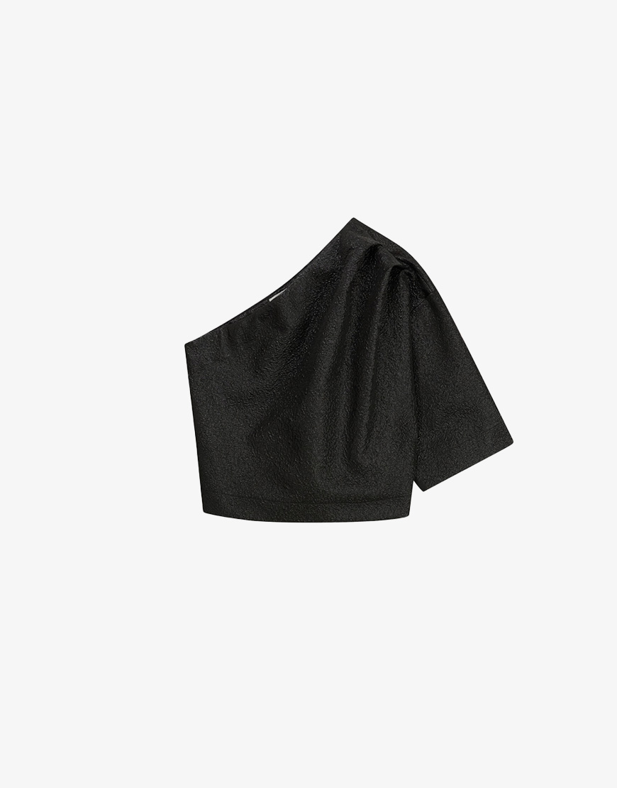 One shoulder top met metallic detail