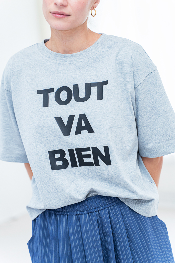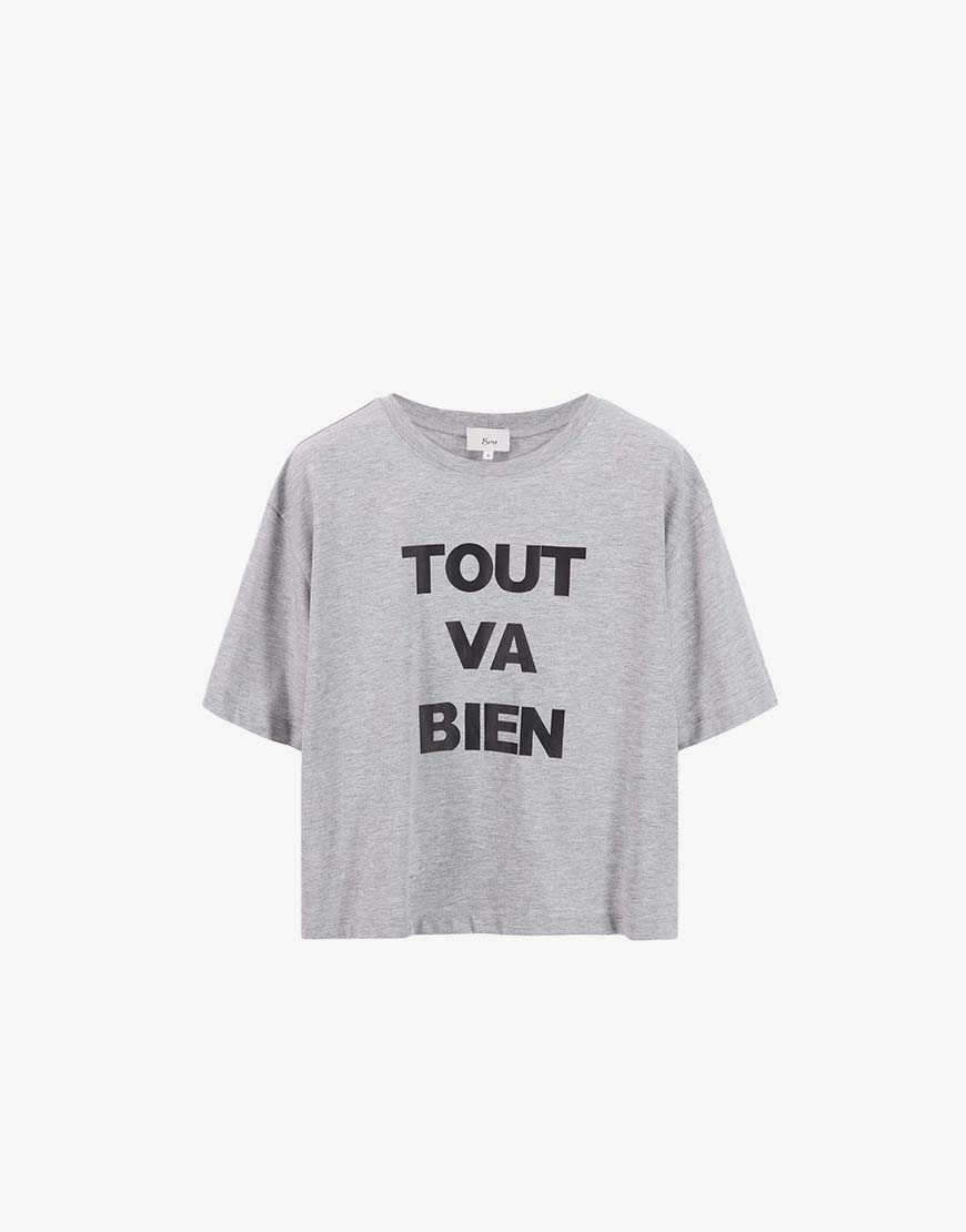 Deze 8PM Madrid shirt grigio melange is een echte basic style secret. Dit shirt valt iets korter, perfect voor op je hoge broeken. De tekst geeft een nonchalante twist aan het shirt. Het shirt is gemaakt van 100% katoen. Dit item kun je eindeloos combineren.
