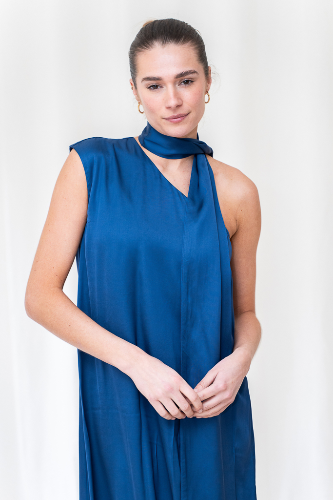 Deze 8PM Reykjavik jurk blue is een echte beauty. Perfect voor een bruiloft of ander feest. De jurk draagt heerlijk en heeft een mooie vrouwelijke pasvorm en een groot pasbereik. Er zit een sjaal/ceintuur bijgeleverd welke je op verschillende manieren kunt dragen. Om de hals als een sjaal of om de taille of heup.