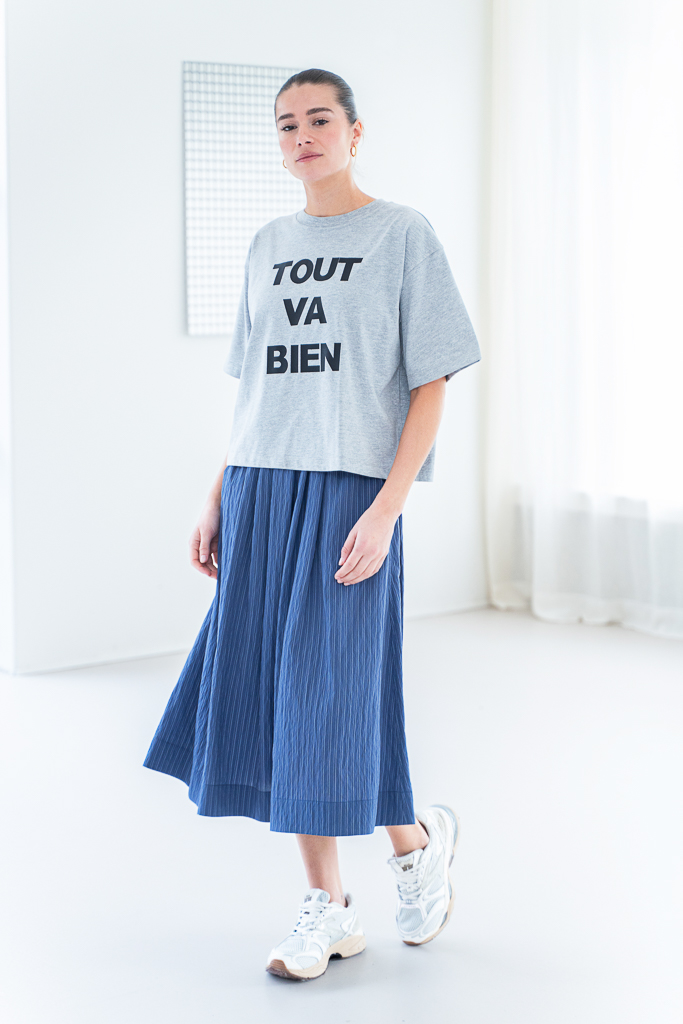 Deze 8PM Varsavia rok gestreept avio is een echte style secret. Deze luchtige rok is een van onze favoriete items uit de collectie van 8pm. Draagt heerlijk en echt zo’n item waar je jarenlang plezier van hebt. De rok kun je als set dragen op de bijpassende blouse. De rok heeft een elastische boord.