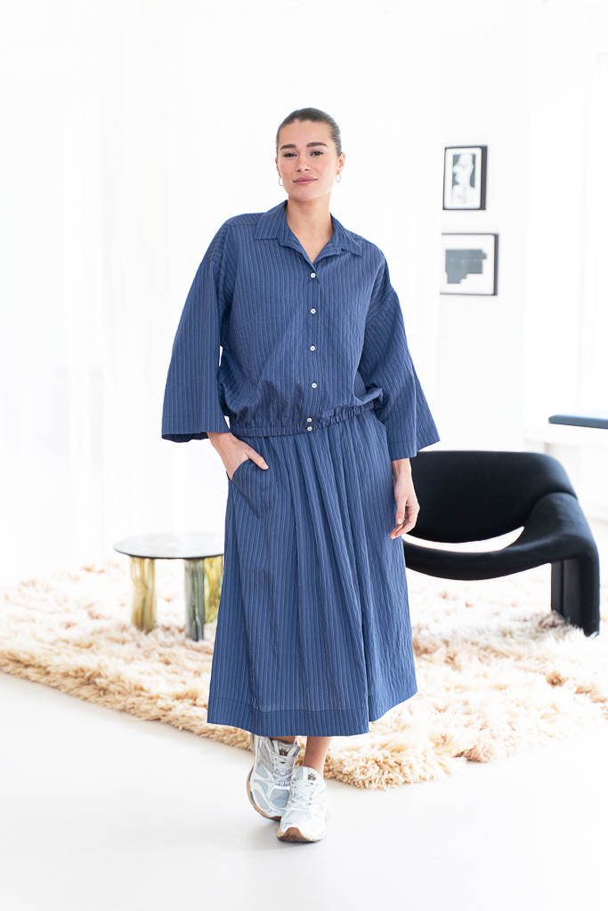 Deze 8PM Zagabria blouse gestreept avio is een echte style secret. Deze luchtige blouse is een van onze favoriete items uit de collectie van 8pm. Draagt heerlijk en echt zo’n item waar je jarenlang plezier van hebt. De blouse kun je als set dragen op de bijpassende rok. De blouse heeft een elastische boord aan de onderkant en driekwart mouw.