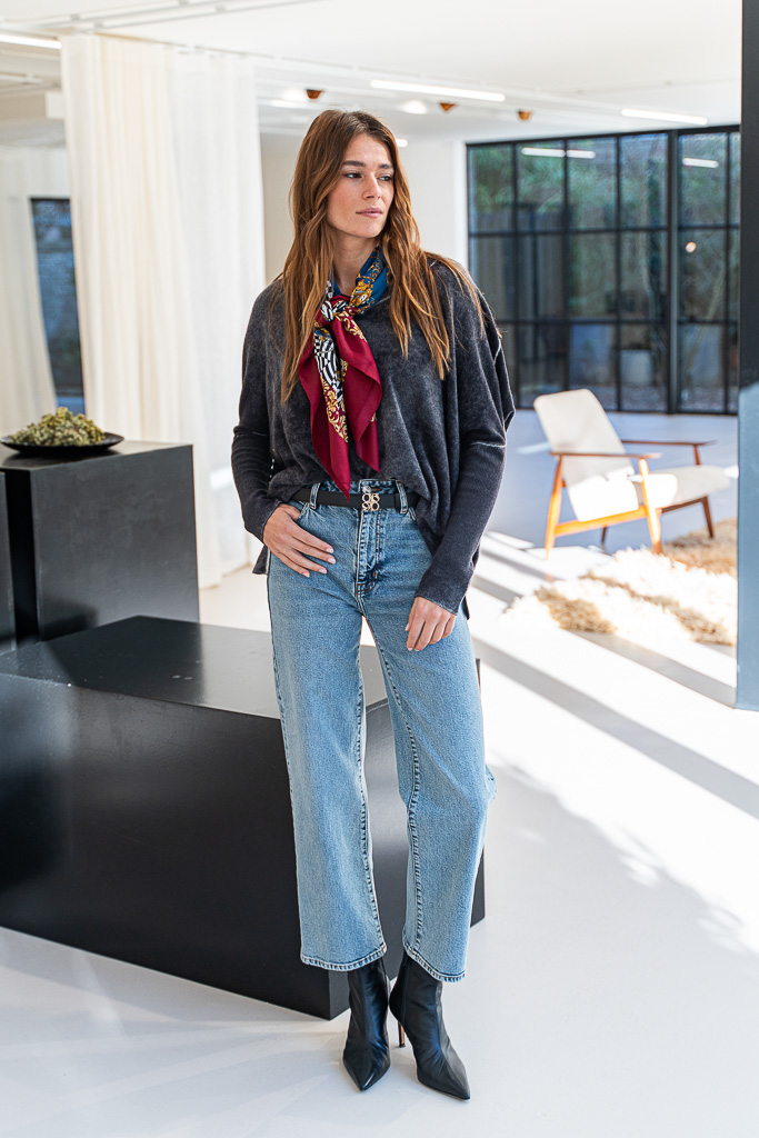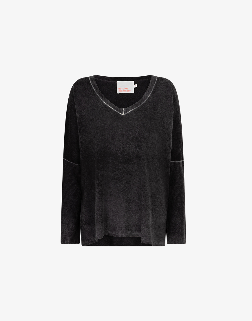 Deze Absolut Cashmere Camille denim trui in de kleur black vintage denim is super zachte trui en kun je eindeloos combineren en heeft de perfecte pasvorm. De trui is gemaakt van 100% cashmere. Dit model valt wat wijder en heeft een v-hals met dunne rib manchet en zoom. Een tijdloos item waar je jarenlang plezier van hebt.