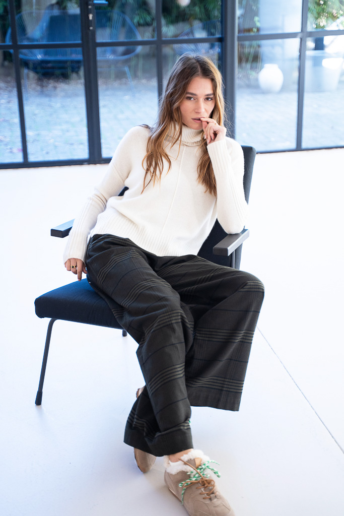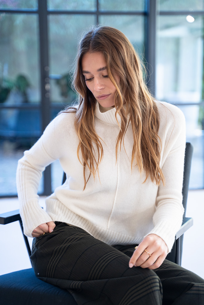 Deze Absolut Cashmere Candace coltrui in het creme is gemaakt van een super zachte 100% cashmere en mag niet ontbreken in je garderobe. Deze fijne basic trui heeft een afneembare col, lange mouwen en normale pasvorm. Deze coltrui is perfect voor nu en als de dagen wat kouder beginnen te worden. Echt zo’n item waar je jaren plezier van hebt. Combineer de trui met al je favoriete broeken en rokken en draag er een oversized blazer over. Maak de look compleet door er een paar toffe sneakers of enkellaarzen onder te dragen.