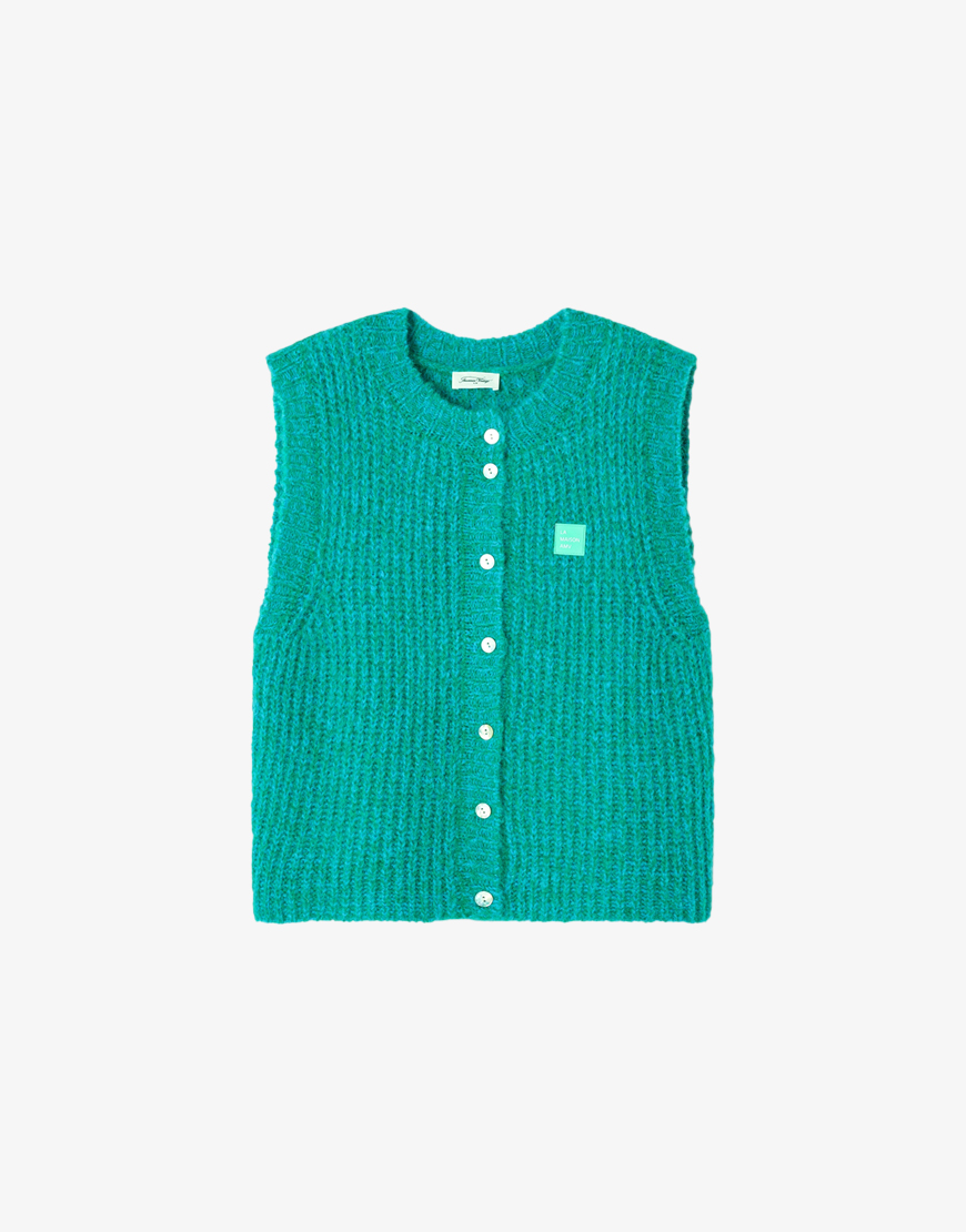 Dit American Vintage East gilet in een mooi gemêleerd groen turquoise tint is een perfecte toevoeging aan in je garderobe. Dit gilet heeft een knoopsluiting, mooi blauw turquoise logo, heerlijke pasvorm en is gemaakt van een mix van alpaca en wol wat heerlijk draagt en perfect voor aankomend seizoen. Een item waar je heel het jaar plezier van hebt. Combineer dit gilet met al je looks, met een fijne jeans, pantalon of lerenbroek. Maak de look compleet door er een paar toffe sneakers of enkellaarsjes onder te dragen.