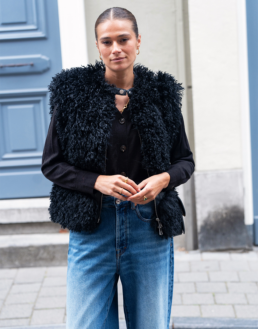 Deze Apparis Cleo gilet is een echte style secret die je wil hebben voor deze winter. Apparis is een nieuw merk in onze secret brandlist. Deze faux fur gilet van Apparis valt op de heup, heeft een blinde schuifsluiting, steekzakken en valt normaal van maat. Deze de harige faux fur gilet is echt een statement piece voor het najaar. Doordat deze mouwloos is valt hij erg goed te combineren met bijvoorbeeld een blouse of een sweater en is ook goed door te dragen naar het volgend seizoen door het te combineren met iets wat een kortere mouw heeft.