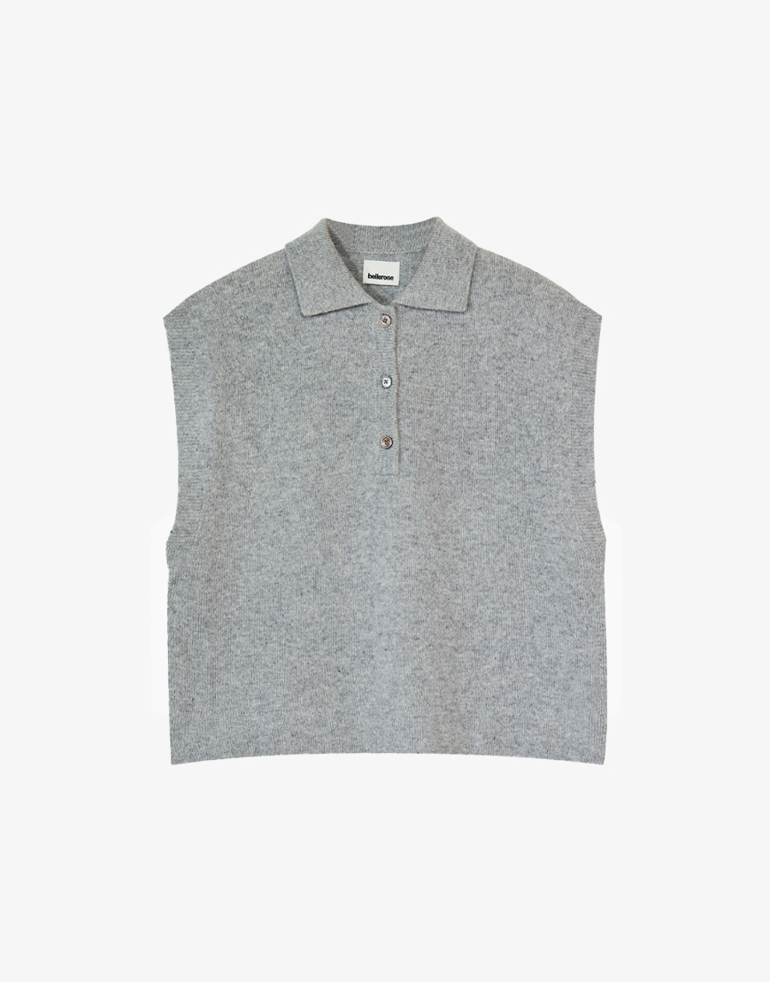 Deze Bellerose mouwloze, oversized knit in zachte grijze wolmix is ideaal voor frisse dagen waarop je nog niet helemaal afscheid wilt nemen van de zomer. De klassieke polokraag geeft hem een preppy touch, terwijl de grote armsgaten en relaxed fit zorgen voor die nonchalante vibe. Draag hemover een blouse, T-shirt of longsleeve. Geribde details langs de kraag, zoom en armsgaten maken ’m helemaal af. Kies je eigen maat voor een losse, oversized fit of ga een maatje kleiner als je ‘m iets meer aangesloten wilt.