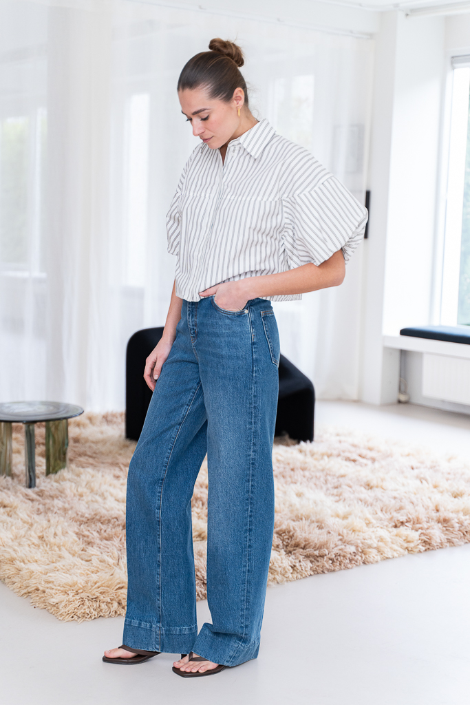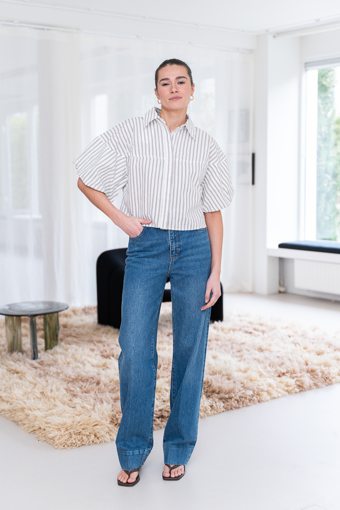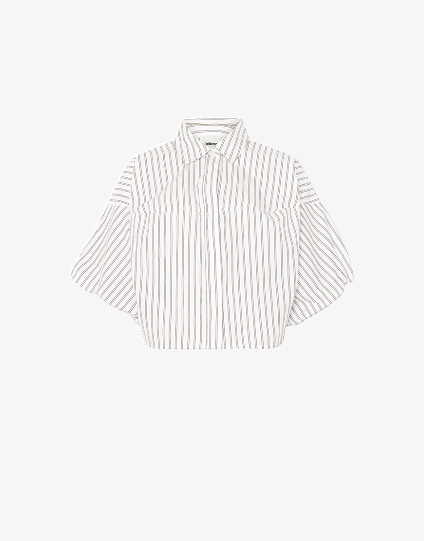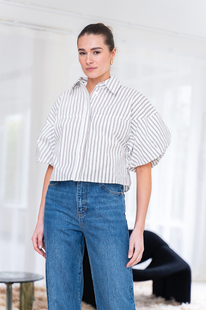 Deze Bellerose Cassy blouse white stripe is een van onze favoriete items uit de collectie van Bellerose. Een fijne secret basic waar je jarenlang plezier van hebt. Deze mooie witte gestreepte blouse met pofmouw is gemaakt van een luchtige 100% katoen. De blouse valt normaal en is iets cropped.