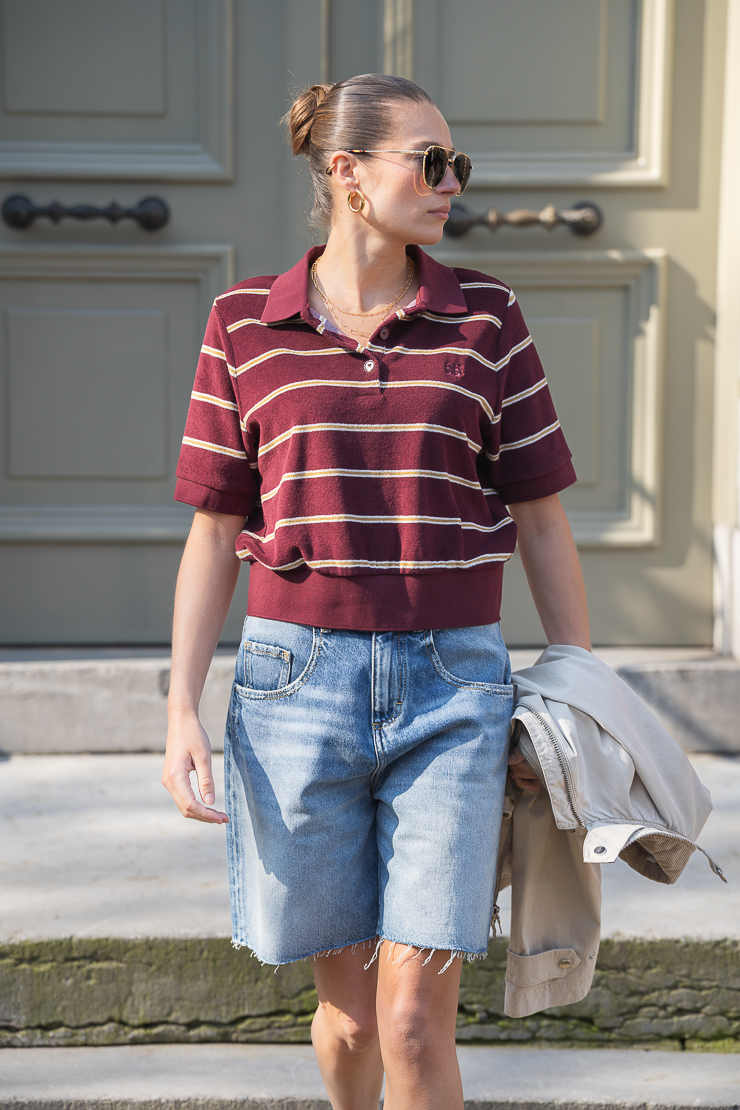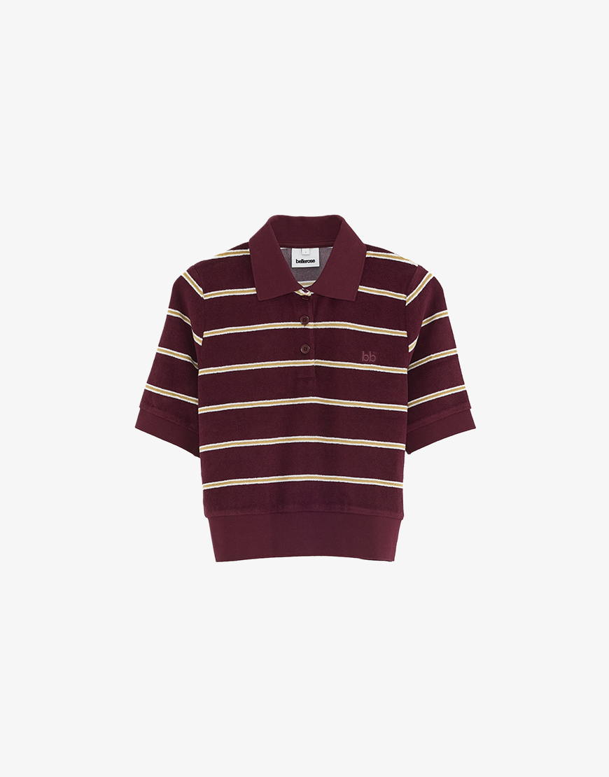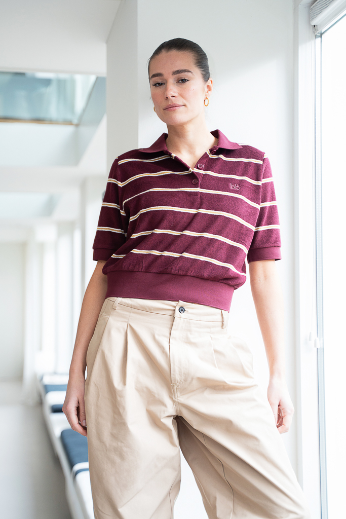 Deze Bellerose Crixus polo streep bordeaux is een van onze favoriete items uit de collectie van Bellerose. Een fijne secret basic waar je jarenlang plezier van hebt. Deze toffe zachte badstof polo is helemaal van nu en draagt heerlijk. De bordeaux streep combineert mooi met beige tinten, donkerblauw, jeans en grijs. De top is gemaakt een katoenmix en heeft een elastisch boord. De top valt wat kleiner en meer aangesloten.