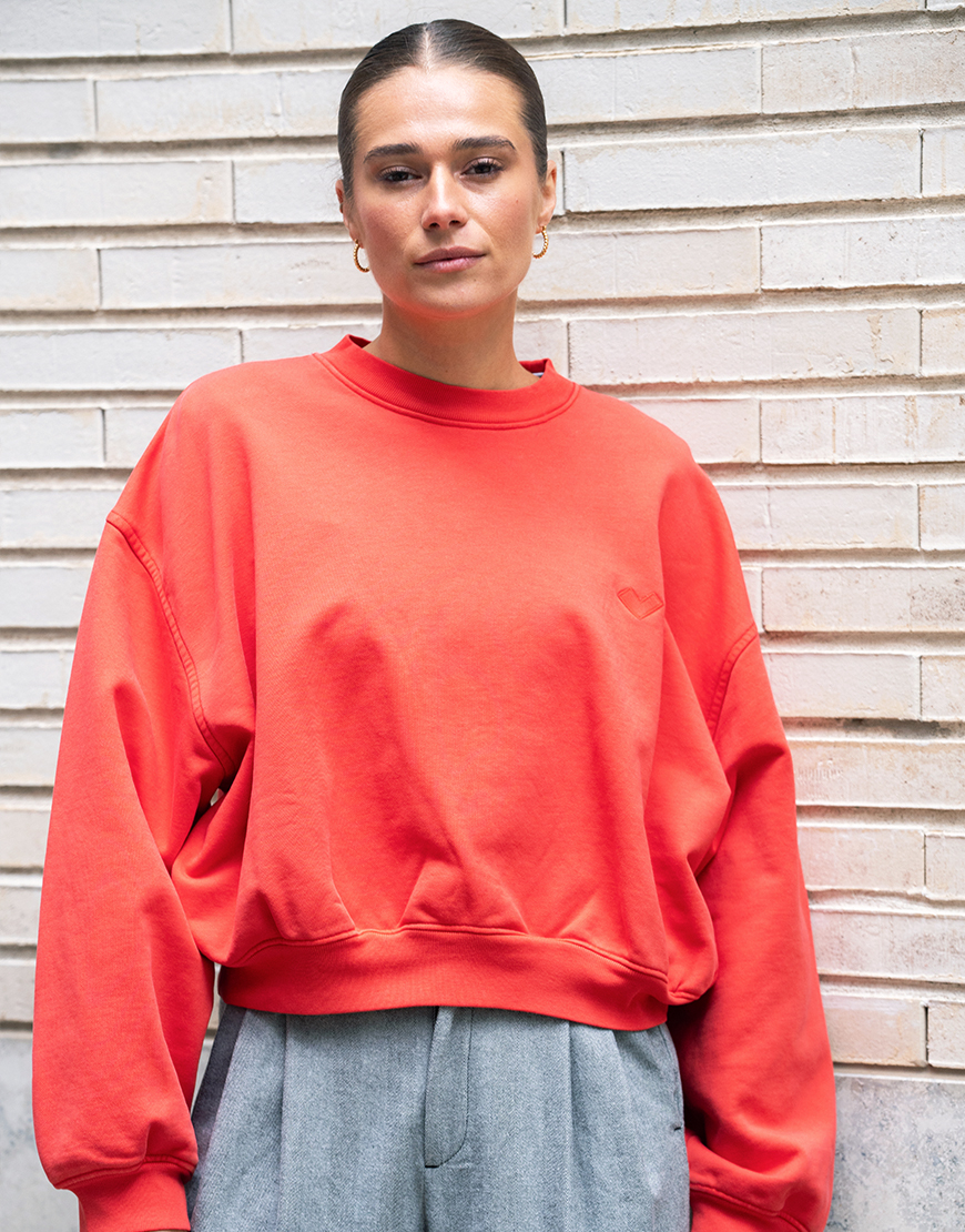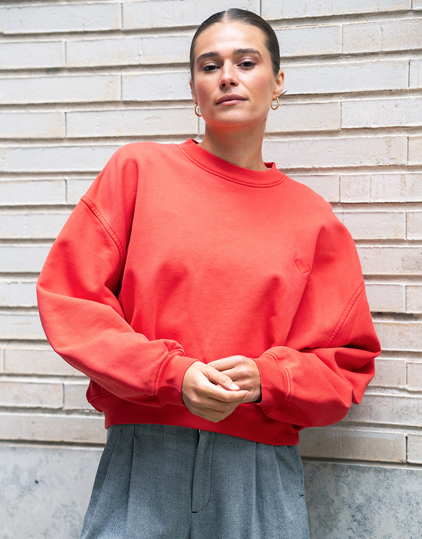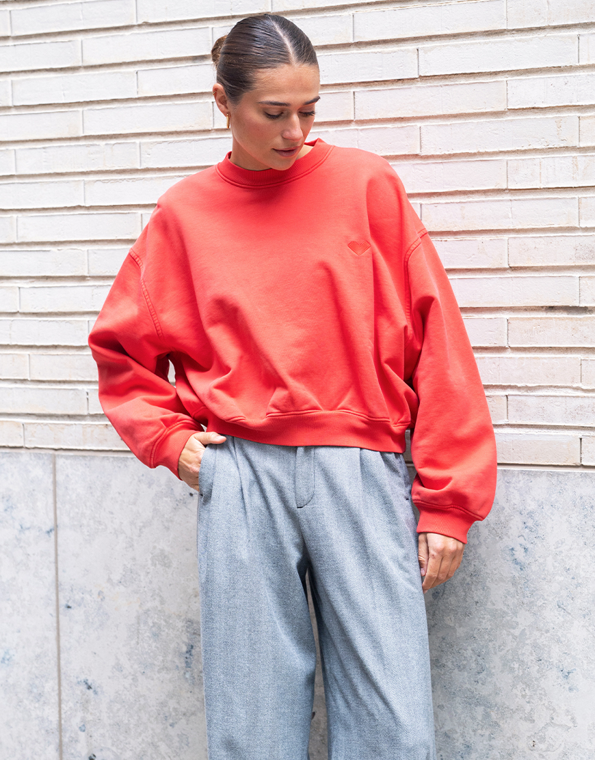 Dit Bellerose Fancy relaxed fit sweatshirt is gemaakt van comfy katoenjersey en heeft afhangende schouders voor die nonchalante look. De cropped lengte geeft ‘m net wat extra pit, terwijl het ton-sur-ton hartjesborduursel op de borst een subtiel lief detail toevoegt. Met geribde boorden, een ronde hals en genoeg ruimte om er lekker in te bewegen. Gewoon zo’n trui die je aantrekt en de hele dag niet meer uit wilt doen.
