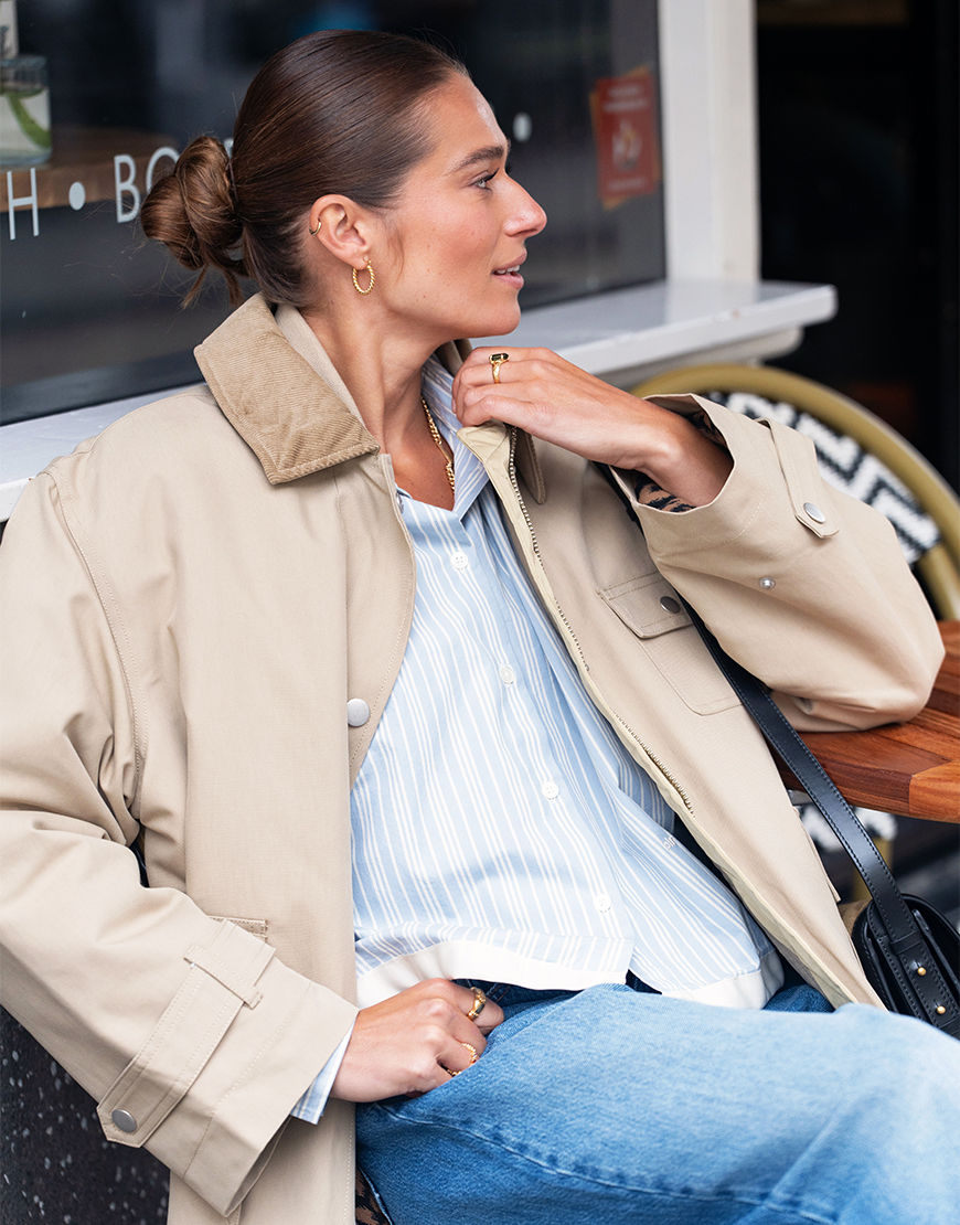 Deze Bellerose Jungle jas in greige katoenmix is precies wat je nodig hebt voor frisse dagen waarop je er nonchalant leuk uit wilt zien. De corduroy kraag, de borstzak met klep en de twee diepe zakken maken hem super praktisch. De jas sluit met een verborgen rits en drukknoopjes, de mouwen zijn verstelbaar en achter zit een subtiele ventilatieopening met drukknop. Binnenin? Een zachte, gewatteerde voering met, jawel, een luipaardprint die je stiekem steeds wilt laten zien. Ruimvallend, comfortabel en met nét dat beetje extra. Zo’n jas waar je de hele herfst en winter in wilt wonen.