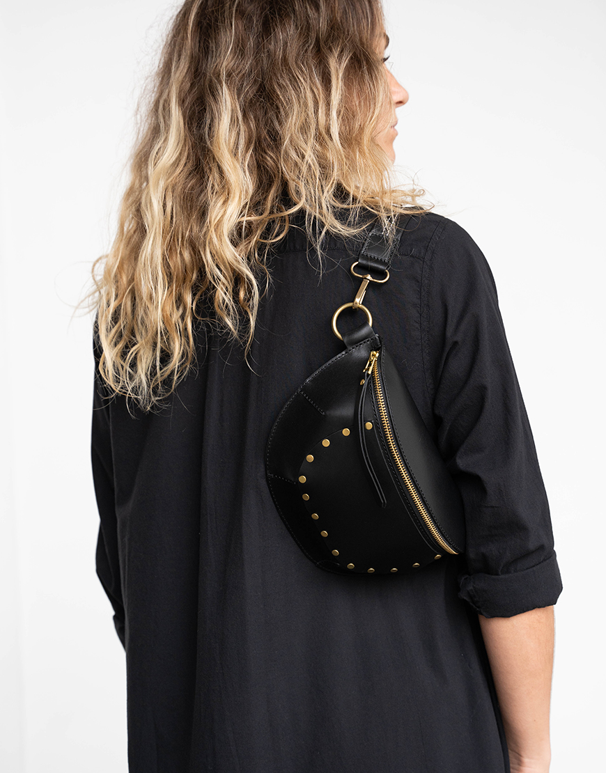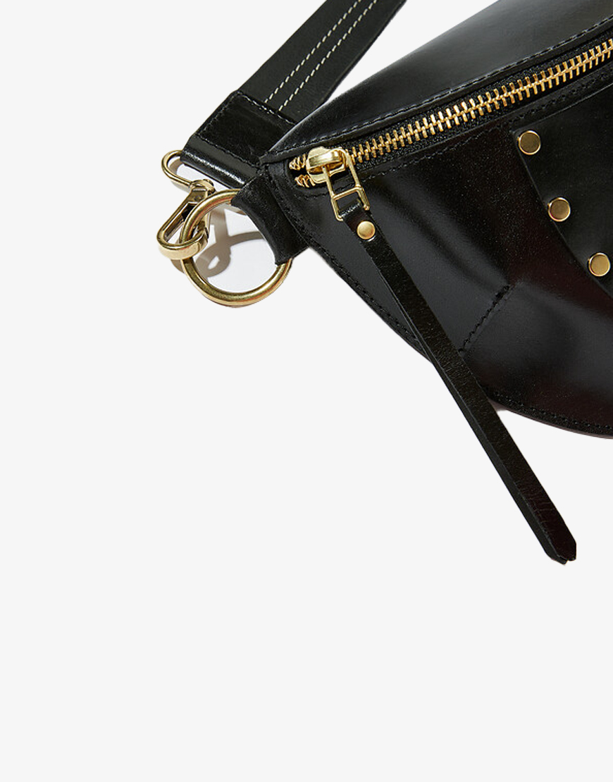 Deze Bellerose Rosigo leren heup tas in het zwart met gouden studs is de perfecte tas voor het komende seizoen. De tas is gemaakt van 100% leer, heeft een ritssluiting, gouden details en een groot vak met een extra klein vak voor je kleine spullen. De tas is helemaal gevoerd en heeft een kort hengsel voor over je schouder of taille maar kan ook alle ander soorten straps hiervoor gebruiken. Combineer deze tas met al je favoriete outfits en je bent ready to go.