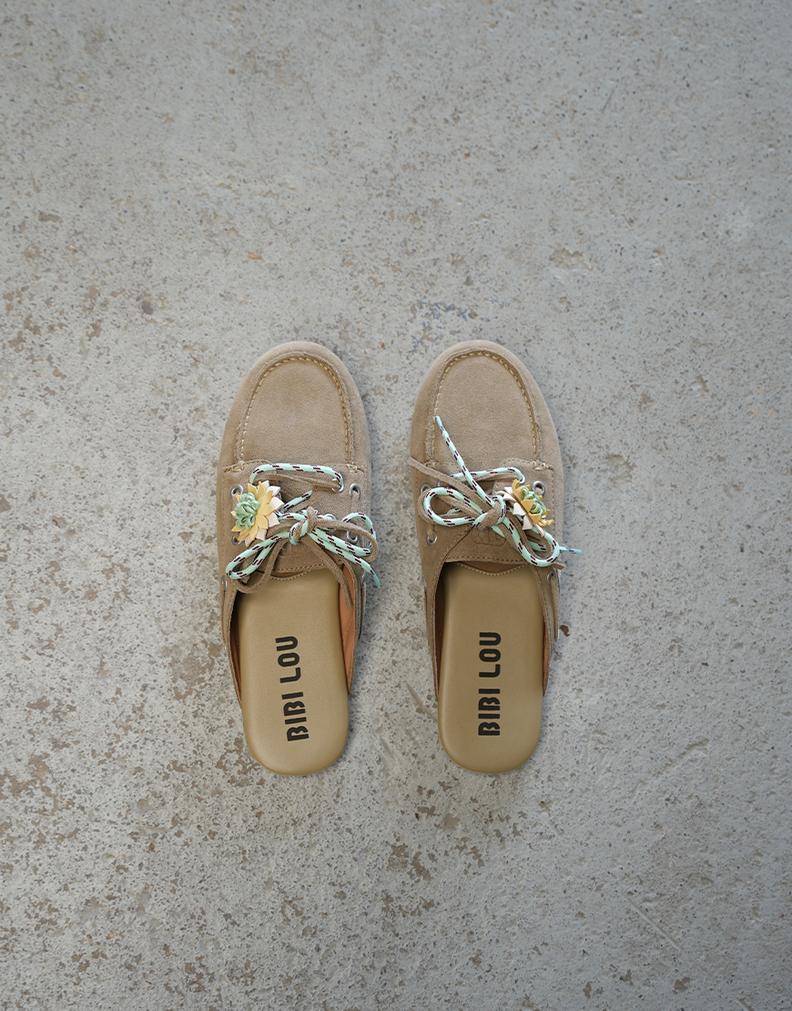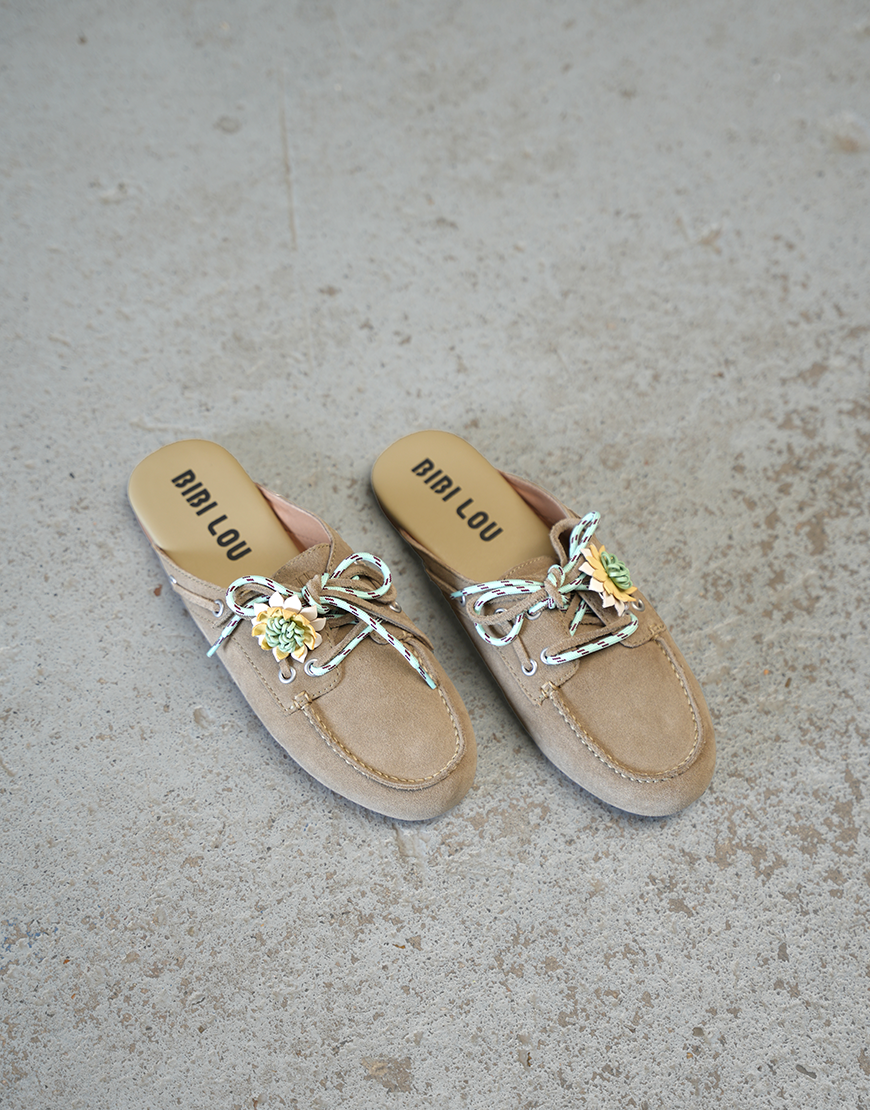 Deze Bibi Lou Tana mule arena suede zijn een must voor dit seizoen wat ons betreft. Deze suede instappers zijn perfect om te dragen onder een toffe jeans, pantalon en short. Door de mooie beige tint matchen ze zo ongeveer met alles en passen ze perfect bij het kleurbeeld voor dit spring summer seizoen. De instapper draagt fijn. Wordt geleverd met een decoratieve bloem deze is afneembaar. Daarnaast wordt de instapper geleverd met een leren en een gekleurde veter.
