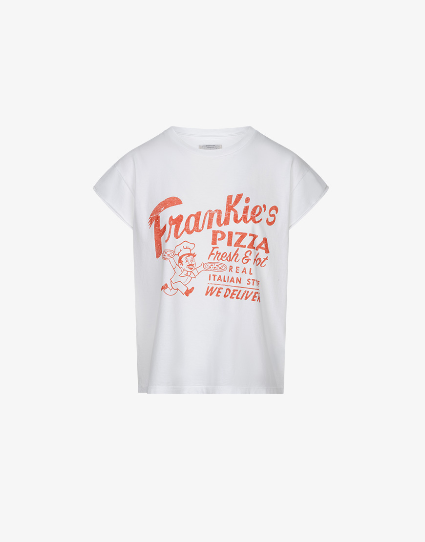 Dit Bowery nyc shirt frankies pizza white is een van onze favoriete items uit de collectie van Bowery nyc. Dit shirt is eigenlijk altijd goed en heeft verder weinig nodig. Perfect voor een comfy ready to go outfit, maar ook tof om te dragen onder een blazer of jasje, echt zo’n item waar je jarenlang plezier van hebt. Het shirt valt mooi en heeft een iets ruimere pasvorm.