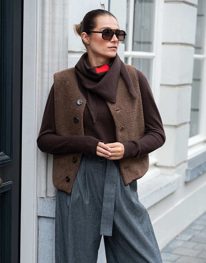 De Amira scarf is jouw go-to accessoire voor elke dag. Gemaakt van 100% superzachte cashmere en uitgevoerd in een driehoekvorm, perfect om nonchalant te knopen of losjes om te slaan. Een subtiel styling piece dat elke outfit net wat extra’s geeft!