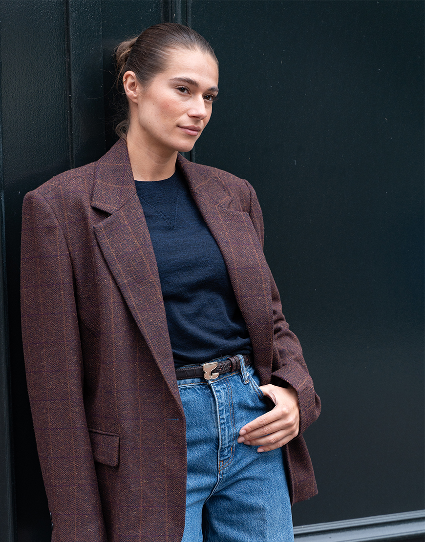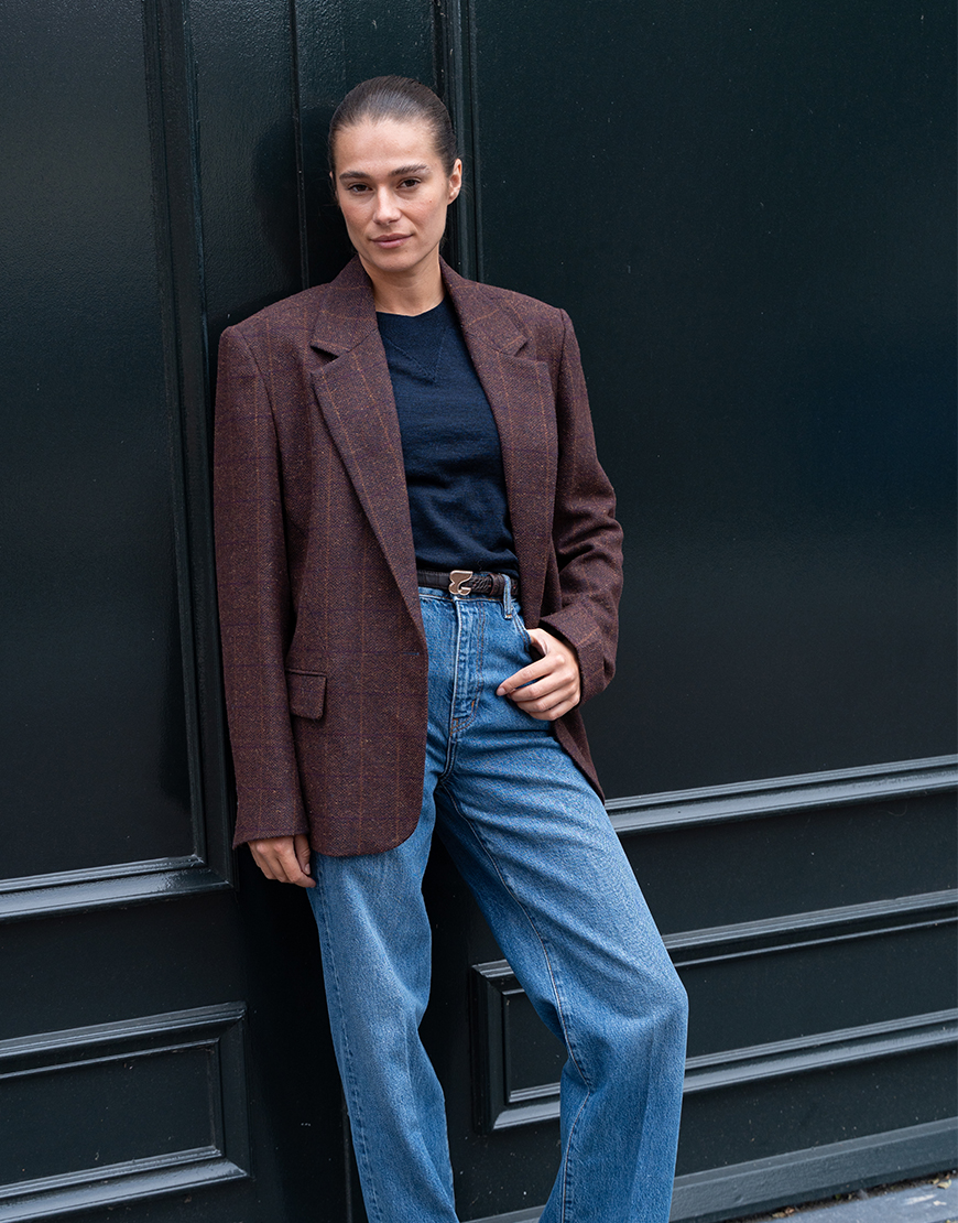 De Collectors Club Jefrey blazer in bordeaux ruit is echt zo’n tijdloze style secret die je eindeloos kunt combineren en echt iets toevoegt aan je look. Combineren kun je de blazer eindeloos. Onze favo look van dit moment een basic shirt of chashmere trui eronder of de mooie rode col van CC, jeans, afstylen met een riem en een gilet erover. Combineer de look met de te gekke hoge laarzen van Toral of een tof bootschoentje of ballerina. De blazer valt iets ruim wat zorgt voor een nonchalante fit.