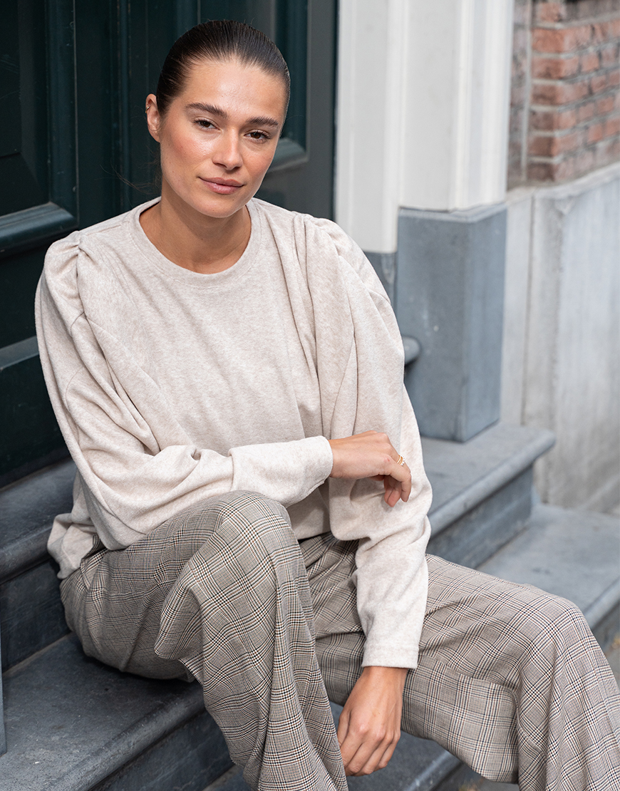 De Collectors Club Terry top is comfy en casual gemaakt van een zachte, ‘spongy’ jersey die heerlijk aanvoelt op de huid. Het model heeft een ronde hals, lange gedrapeerde mouwen en een geplooide schouder voor een subtiel vrouwelijk detail. Perfect voor dagen waarop je iets relaxed wilt dragen zonder in te leveren op stijl.