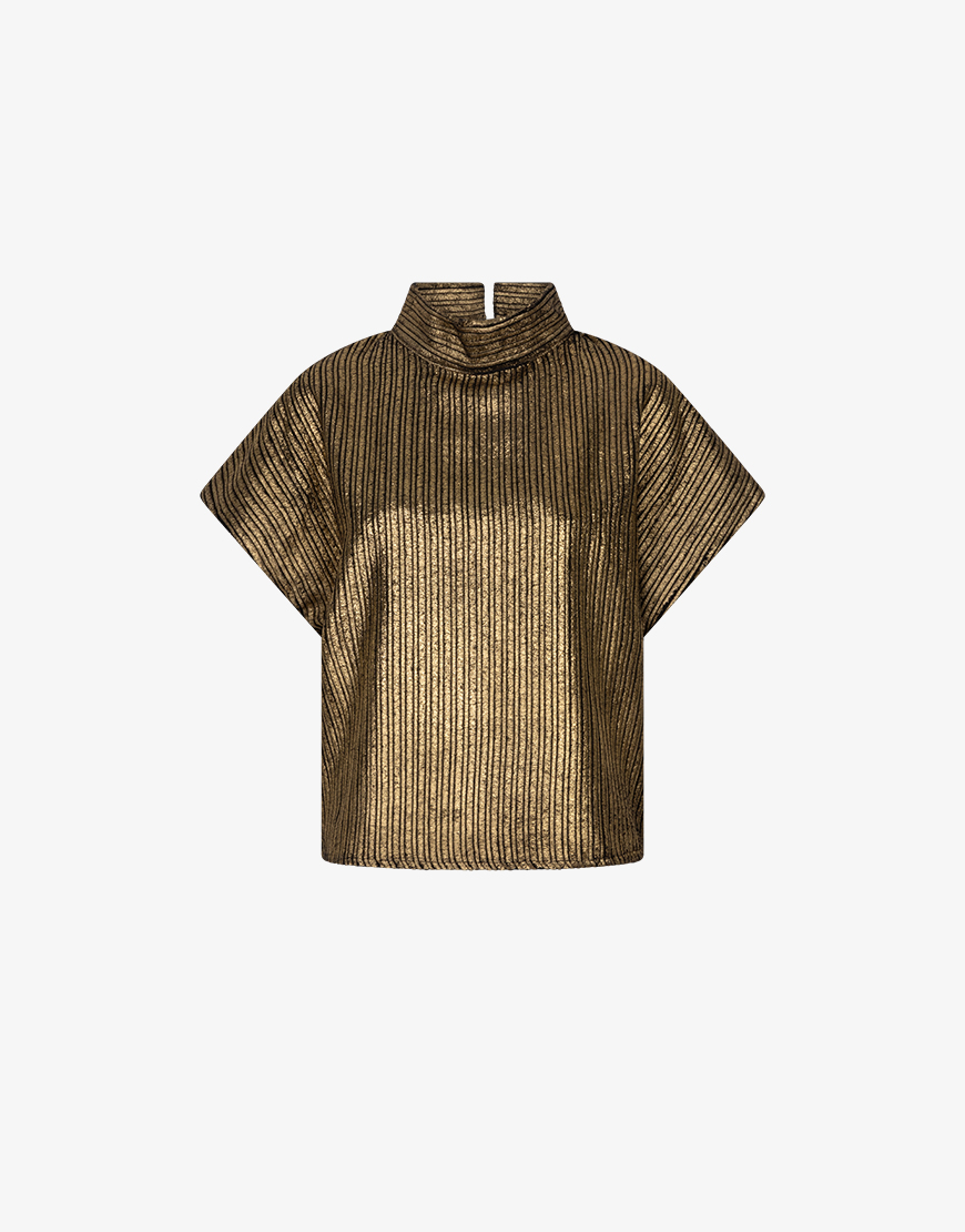 De Collectors Club Tuba top gold is een echte style secret. Perfect voor de feestdagen, maar natuurlijk ook perfect als je een toffe twist aan je look wil geven. Combineer de top bijvoorbeeld op een barrel jeans met een blazer erover. De top heeft een opstaande kraag en valt normaal van maat.