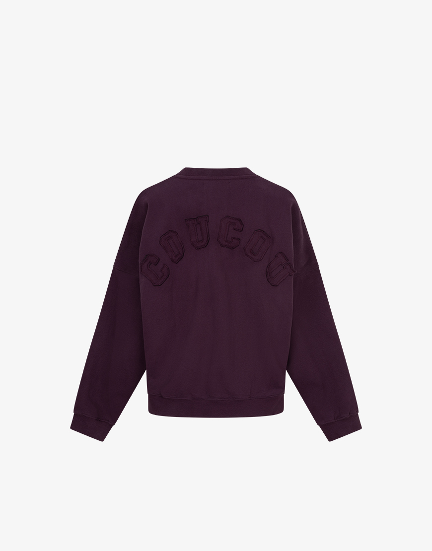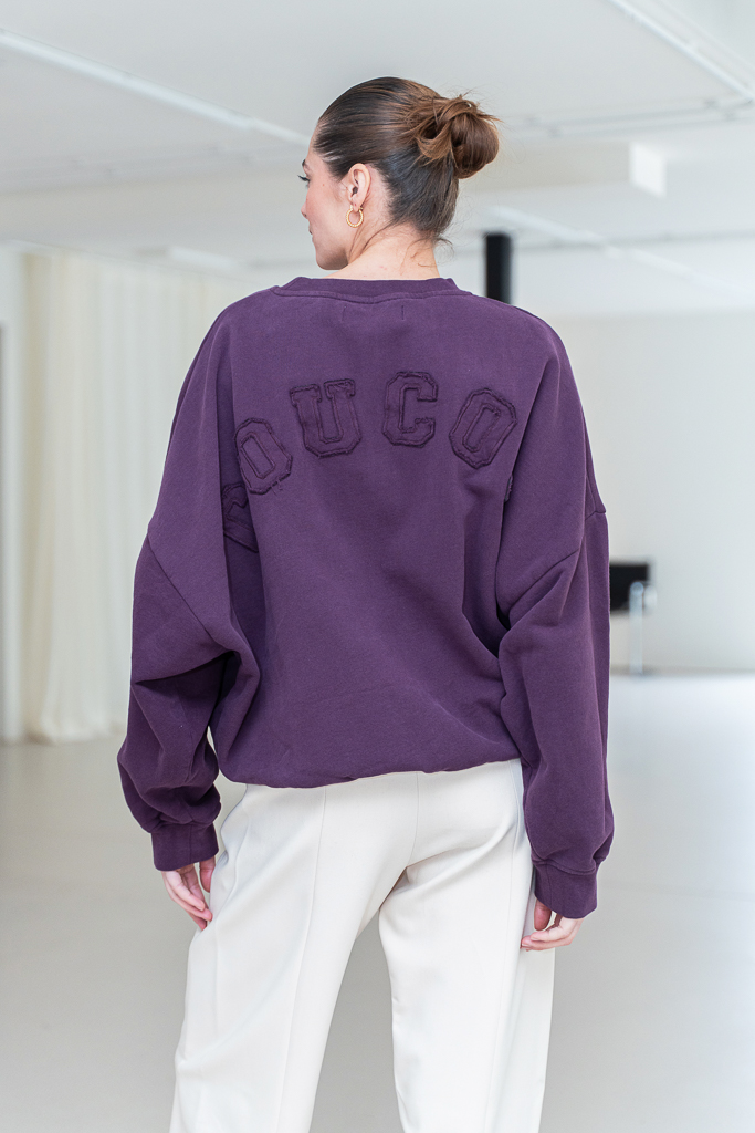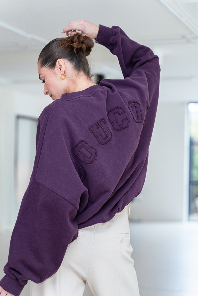 Deze Coucou Antwerp Joseph sweater aubergine is een echte basic style secret. Deze aubergine sweater combineer je eindeloos, de sweater heeft een opdruk op de achterkant en valt oversized. Dit nieuwe merk Coucou komt uit Belgie en maakt een toffe eigentijdse collectie.