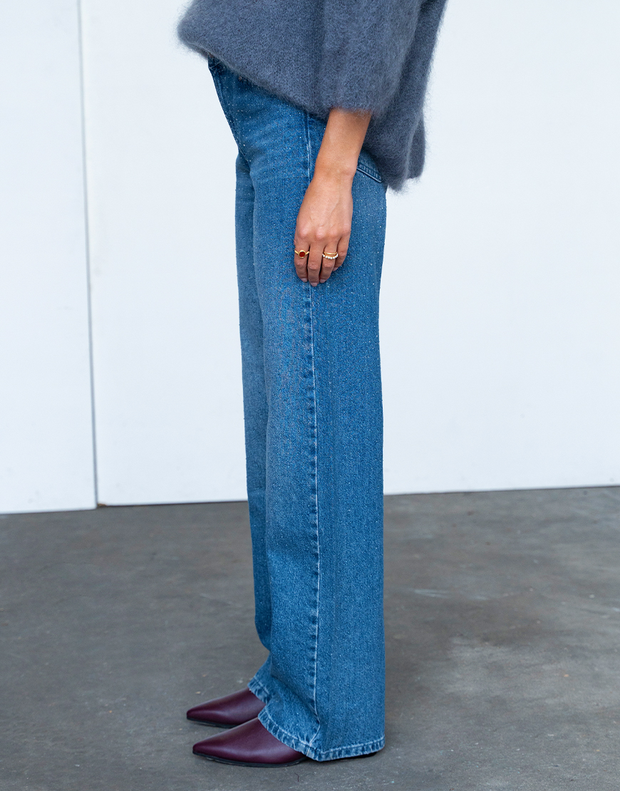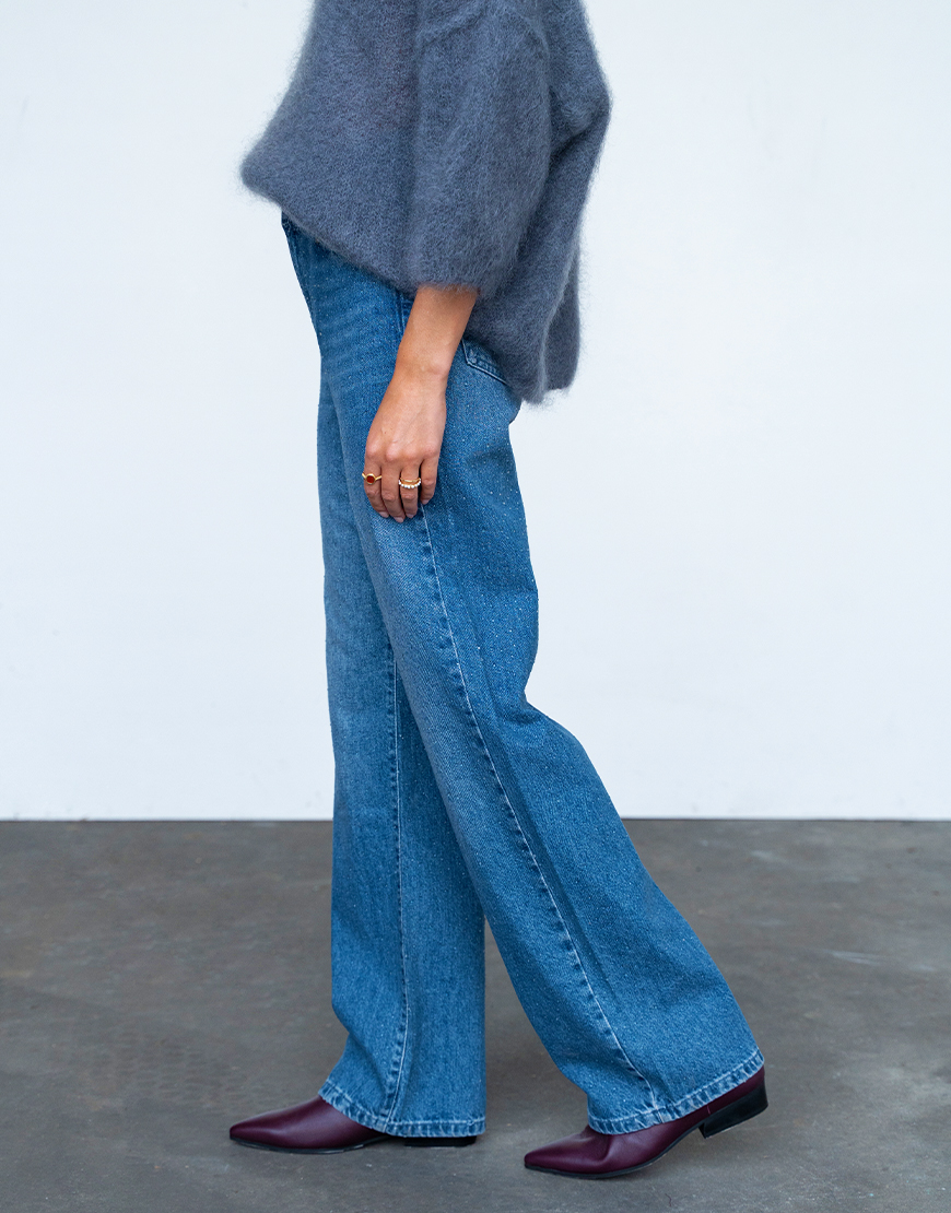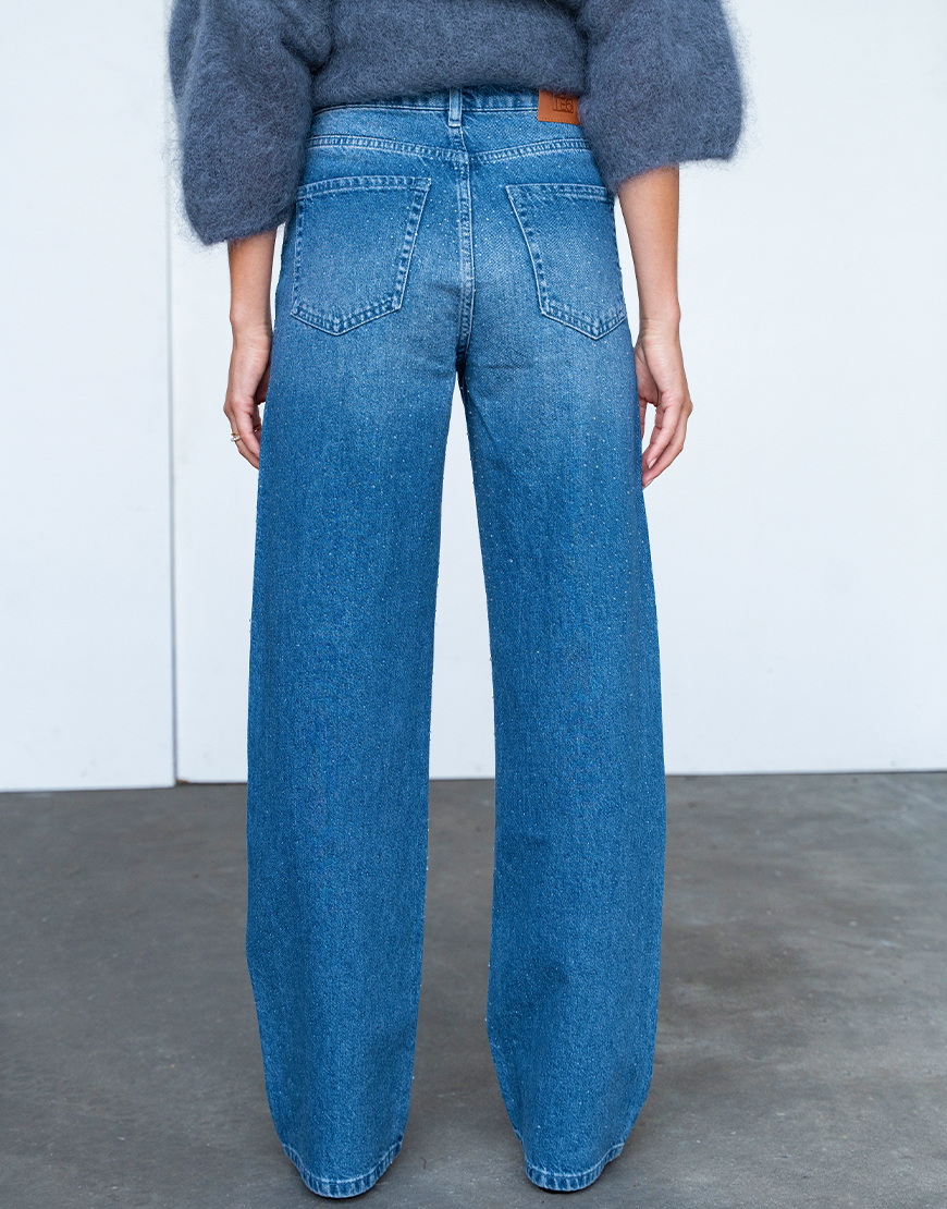 Deze Dante 6 Nuit rhinestone wide leg jeans met in vintage blue is gemaakt van organisch katoen denim. Deze klassieker met vijf zakken en wide leg valt op door de strass-versierde, gewassen denim – een echte eyecatcher. De jeans heeft een rits- knoopsluiting en 5-pocket. Hoog model met wijde broekspijpen waardoor er veel lengte wordt gecreëerd. Combineer de jeans met een mooie top of blouse en style af met een ballerina.