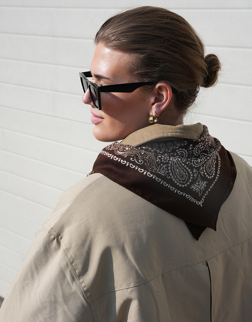 Deze Destin Judy carre bandana sjaal brown is perfect om al je looks mee af te stylen. Deze zachte bandana is gemaakt van 100% wol en de trend van dit jaar. De afmeting is 90cm x 90cm. Destin is een Italiaans merk met een groot assortiment sjaals.