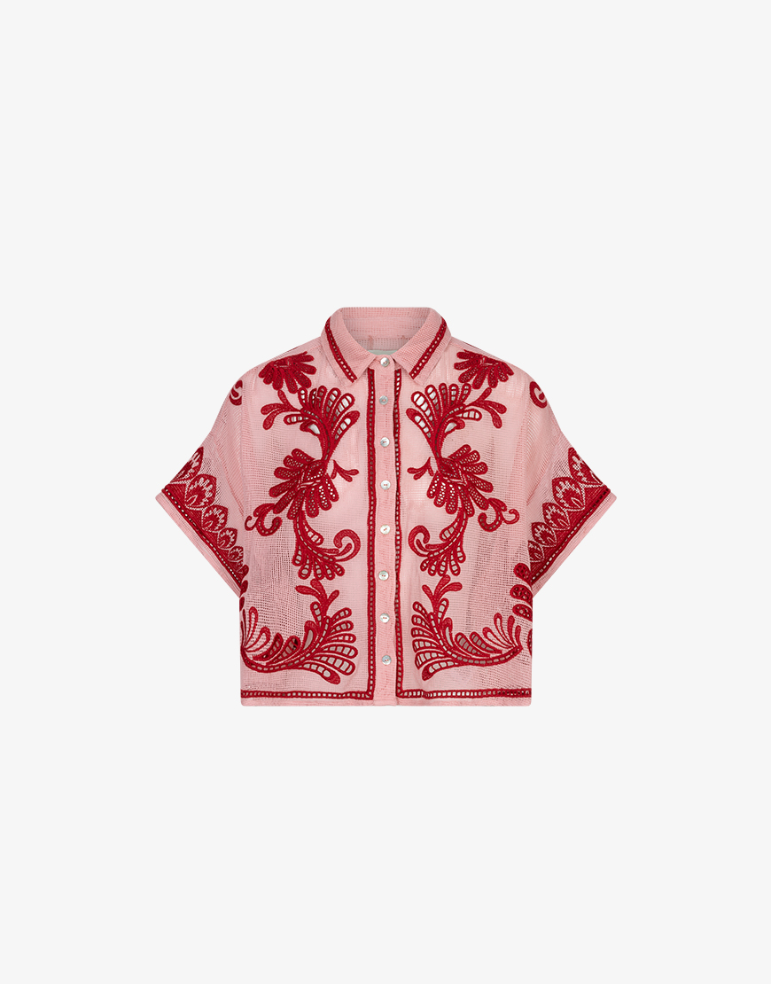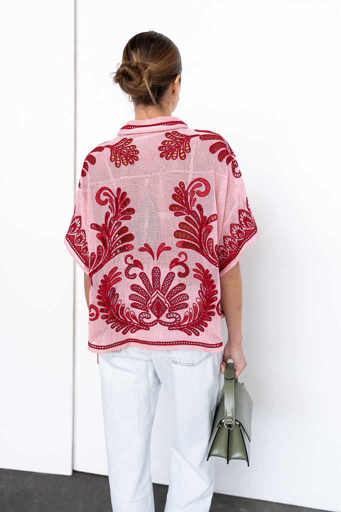 Deze Farm Rio Arabesc light pink blouse is een echte style secret. De blouse is uitgevoerd in een mooi roze print en is gemaakt van katoen. De blouse valt normaal tot wat ruimer van maat. Tof om als set te combineren op een short, pantalon of jeans. Farm Rio is een merk wat zich kenmerkt door hun rijke prints en meest prachtige afwerking.