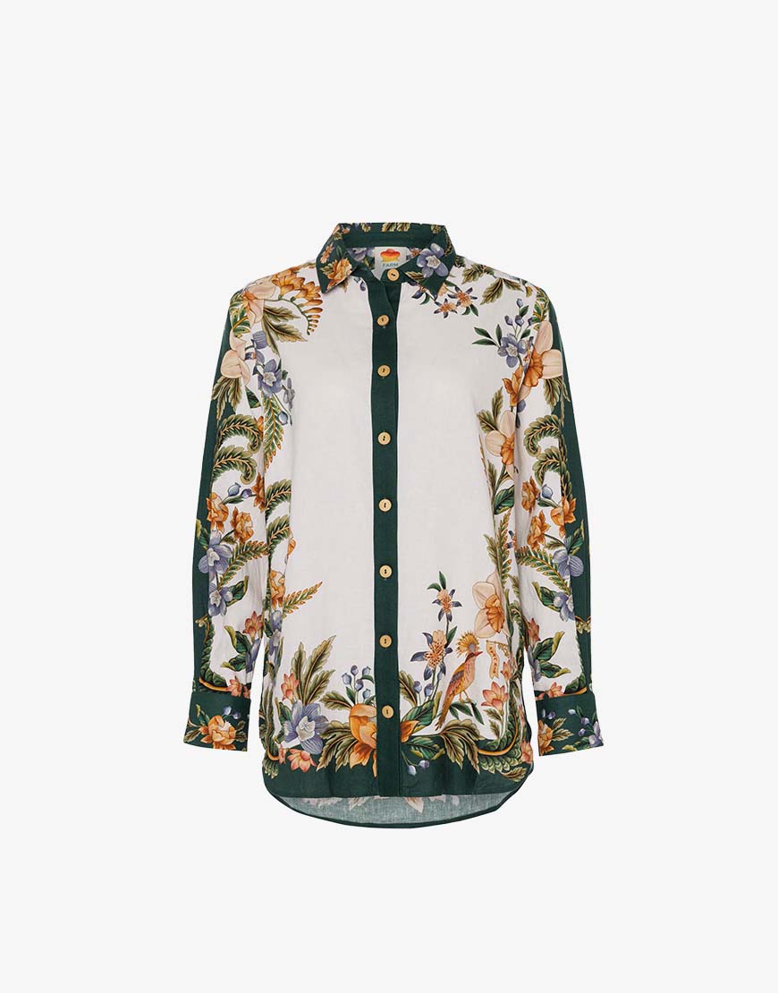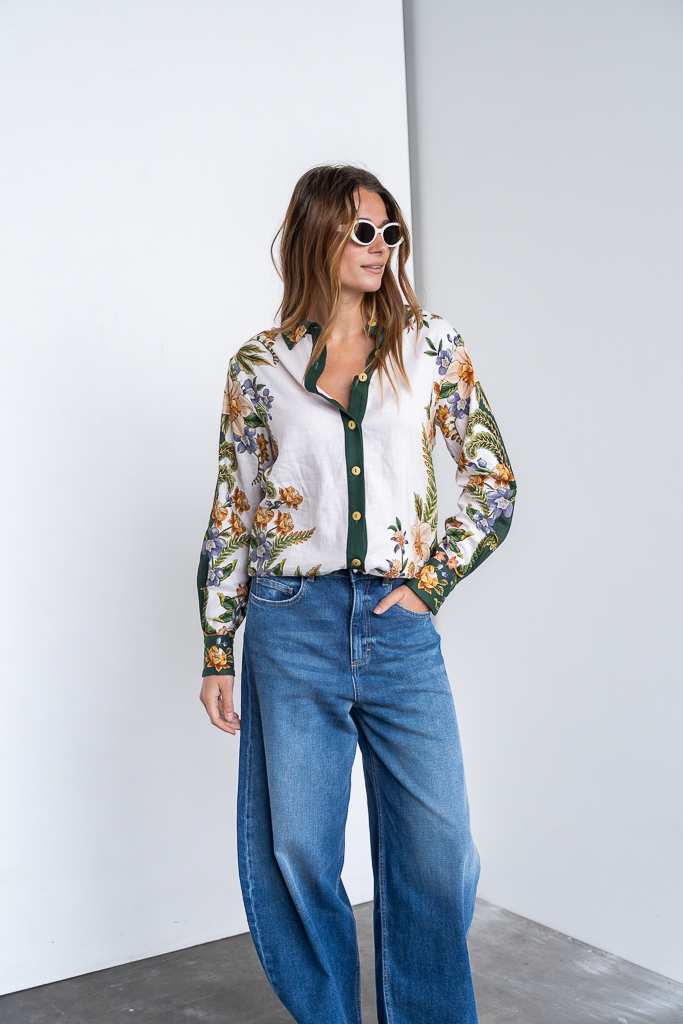 Deze Farm Nature sand blouse is een echte style secret. De blouse is uitgevoerd in een mooi groene print en is gemaakt van een linnen viscose mix. De blouse valt normaal tot wat ruimer van maat. Tof om als set te combineren met de bijpassende broek of een mooie lichte broek of jeans. Farm Rio is een merk wat zich kenmerkt door hun rijke prints en meest prachtige afwerking.