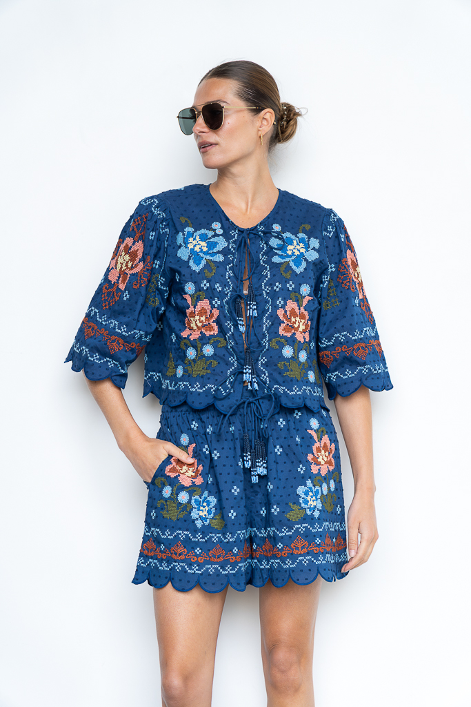 Deze Farm Rio Stitched garden short dark blue is een van onze favoriete items uit de collectie van Farm Rio en een echte style secret. Dit short heeft een hele mooie blauwe print en is gemaakt van een luchtige 100% katoen. Het short is afgewerkt met broderie en heeft een aantrekkoord. Combineer het short met de bijpassende top of een basic blouse of shirt. Het short valt normaal van maat. Farm Rio is een merk wat zich kenmerkt door hun rijke prints en meest prachtige afwerking.