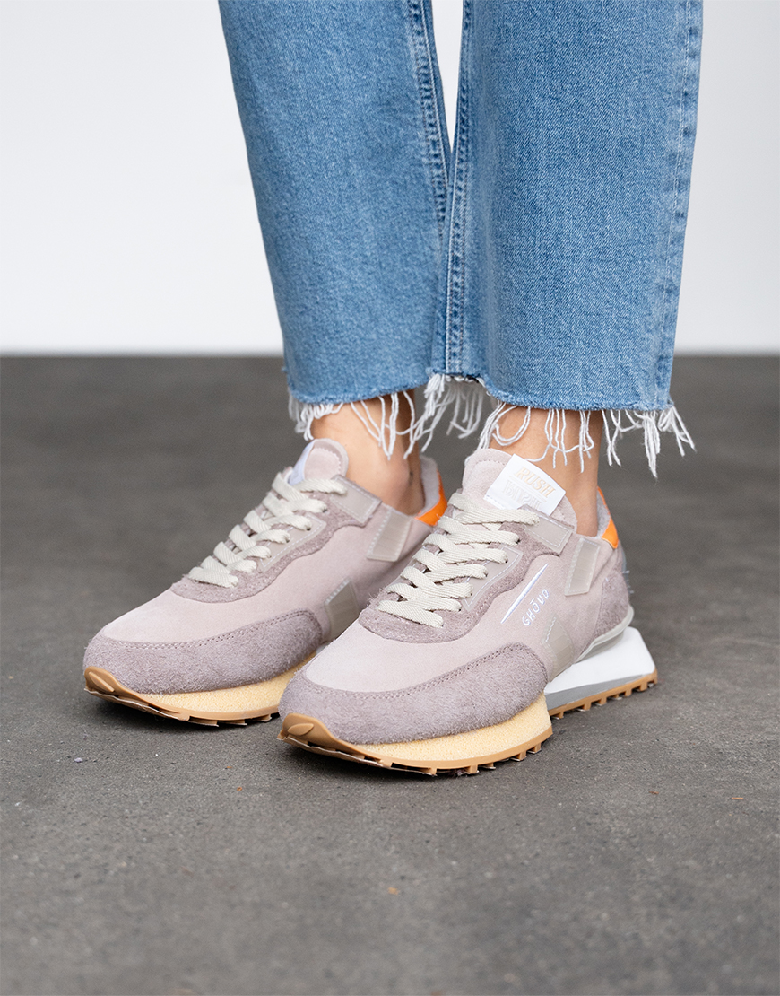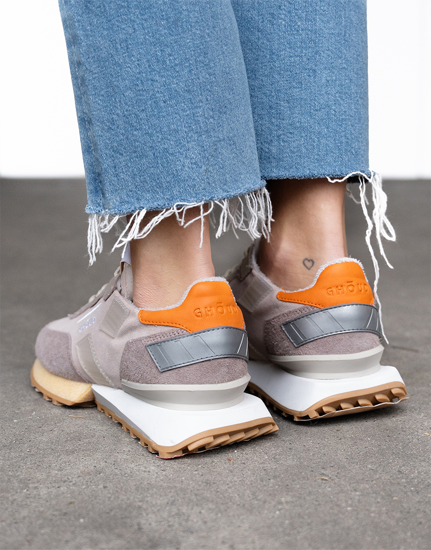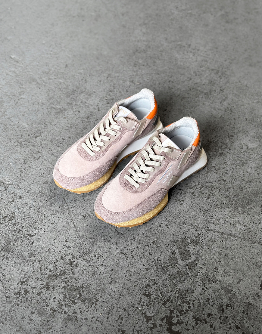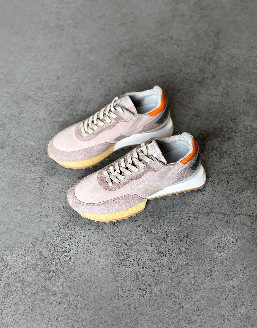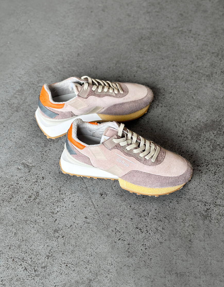 Deze Ghōud Rush groove low sneakers in het zacht roze met oranje is onze nieuwe aanwinst van dit seizoen en lopen zeer comfortabel. De sneakers hebben een rubber zool, leren voetbed en suède buitenkant. Ze zijn lekker licht waardoor ze heerlijk lopen, hebben toffe kleurrijke details, wit beige zool, beige veters en een zoolhoogte van ca. 3,5cm. Combineer de sneakers met al je favoriete items. Ze vallen een maat groter, dus neem een maat kleiner dan normaal.