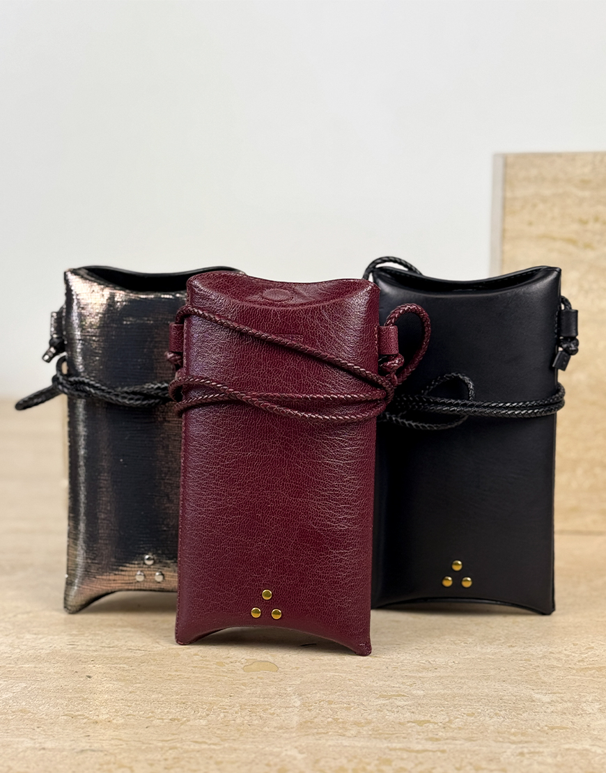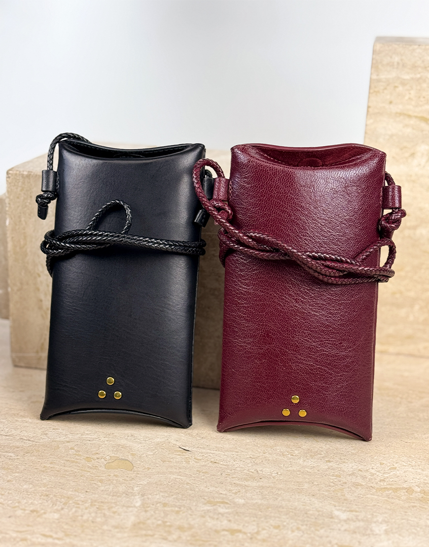 Deze Jérôme Dreyfuss Louis mobile telefoonhoes in een het bordeaux is perfect voor meerdere gelegenheden en terug met een nieuw formaat en model zodat de nieuwe telefoons erin passen. Gemaakt van hoogwaardig leer met katoenen voering, ontworpen met unieke gouden details en een tijdloos design. Het hoesje heeft een vak, magneet sluiting en crossbody gevlochten hengsel. Hier heb je jarenlang plezier van en je kunt het overal mee combineren.