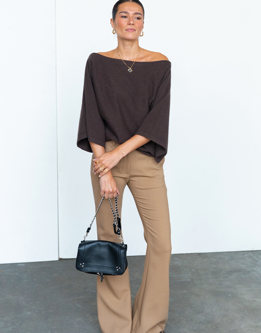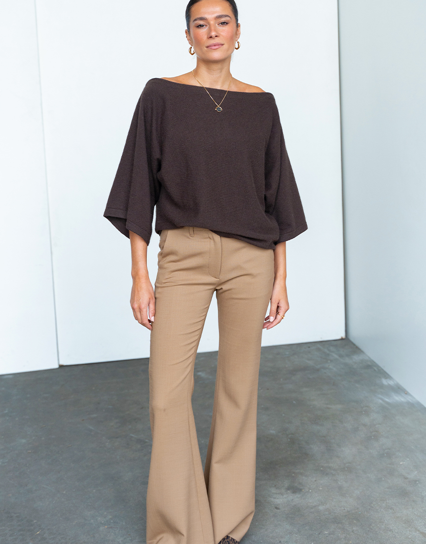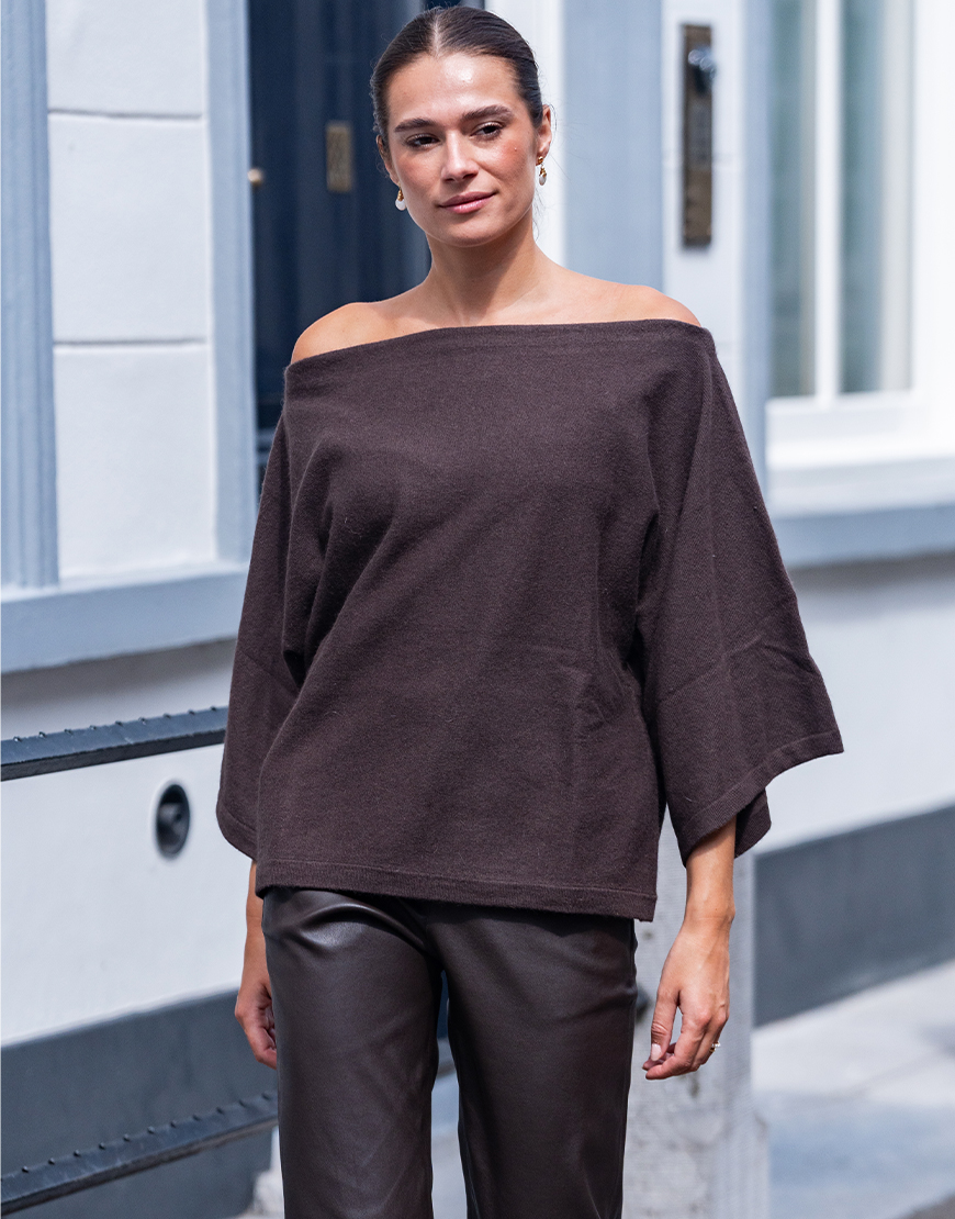 Deze March23 Aida off-shoulder trui chocolate is een heerlijk zachte trui en goed voor elke gelegenheid. Deze mooie bruine tint is een echte secret basic waar je jarenlang plezier van hebt en zeker de trend kleur van dit seizoen. De trui is gemaakt van wol mix, welke heerlijk zacht is. De trui is normaal van lengte. Hij is leuk te combineren met een mooie jeans en een hakje eronder.