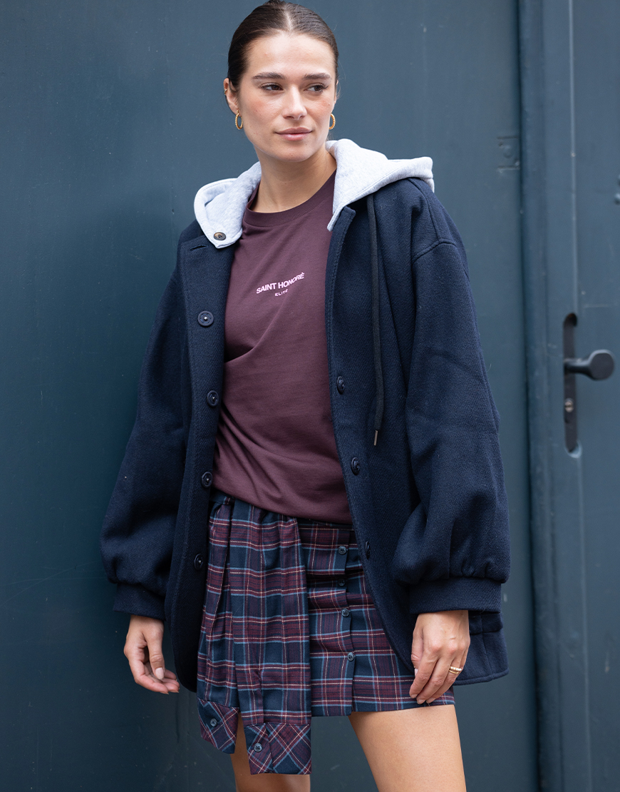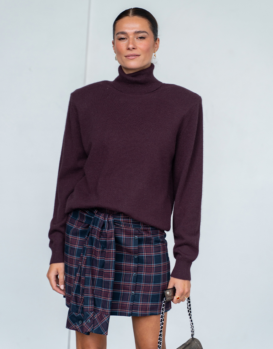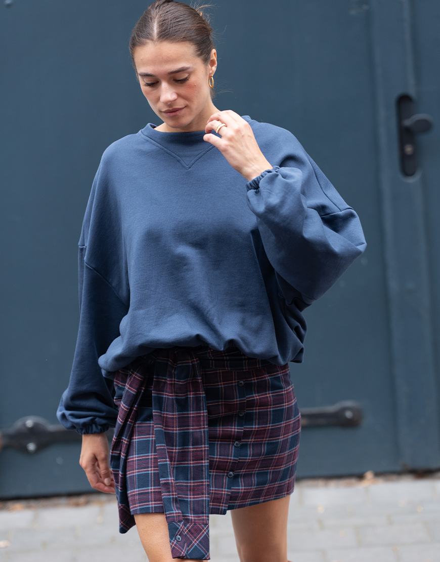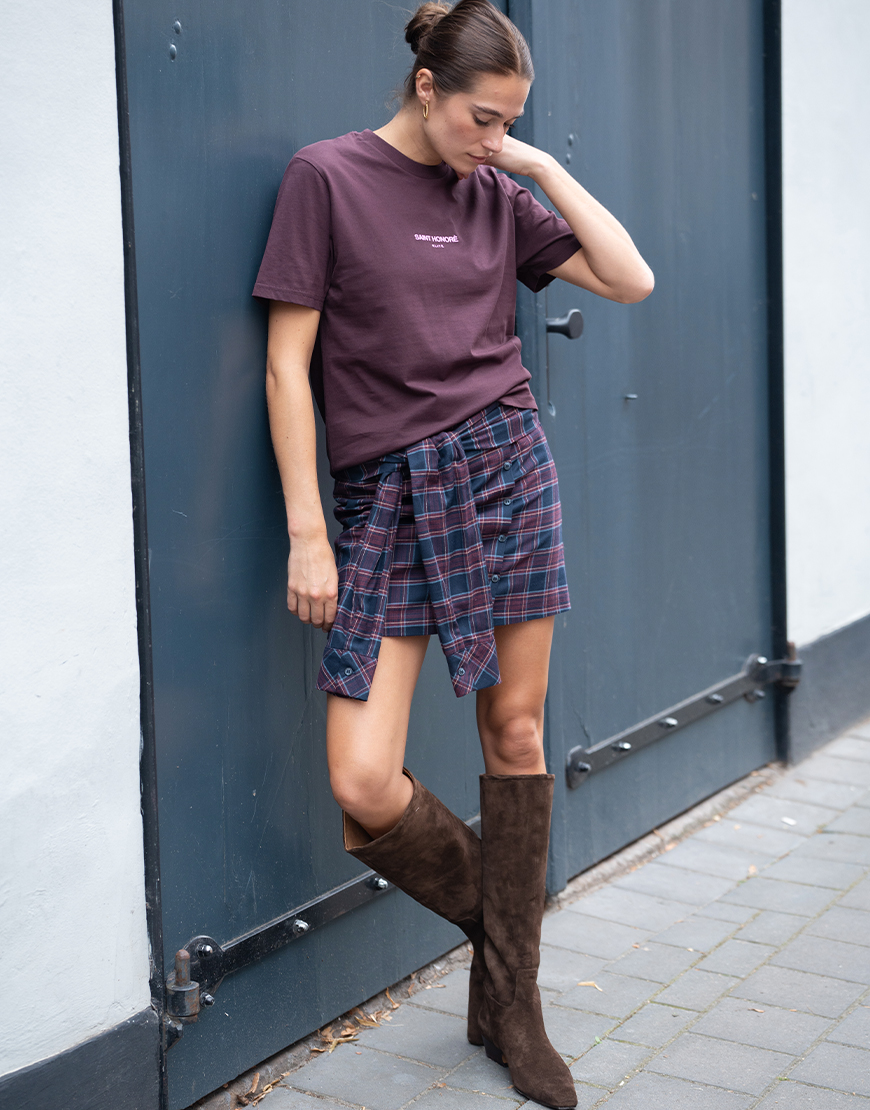 Deze March23 mini geruite Camilla rok in toffe schotse ruit navy bordeaux tinten is de nieuwe trend voor aankomend seizoen en mag niet ontbreken in je garderobe. De rok heeft een blinde ritssluiting aan de achterzijde, sierknopen aan de voorzijde, toffe twist met mouwen die je kunt knopen aan de voorzijde, voering en valt wat korter. Style de rok af met een toffe sweater of trui en een paar toffe laarzen. Of met een mooie blouse en hak of hoge laars voor een avondje uit.