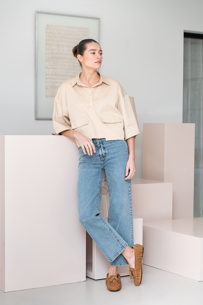 Dit March23 Nox blouse beige is een van de bestsellers uit de collectie van March23 voor dit seizoen. Deze cropped blouse kun je eindeloos combineren, mooi op een hoge pantalon, jeans of een rok. De blouse heeft een cropped pasvorm en is gemaakt van een fijne katoenmix.