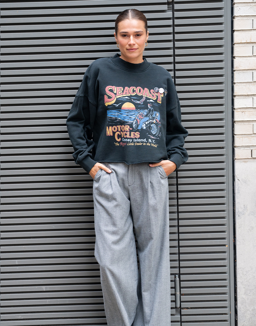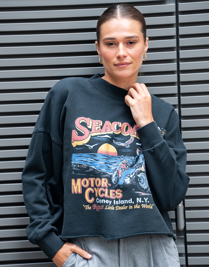 Deze Newtone Porter Seacoast cropped sweater in night blauw tint met toffe opdruk is een item dat je in de kast moet hebben hangen. De sweater heeft een toffe opdruk, is een korter model en heeft een wijde pasvorm. De bijpassende buttons, die echt perfect bij de sweater passen, geven het een leuke twist. De sweater is gemaakt van 100% katoen wat heerlijk zacht is en draagt. Zo’n sweater van Newtone combineer je met je favoriete items en draag je het hele jaar door op een jeans of short. Maak je look compleet door sneakers of sandalen onder te dragen en style je look af met een tas.