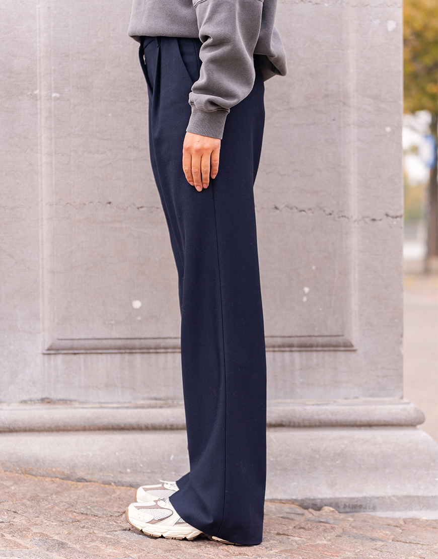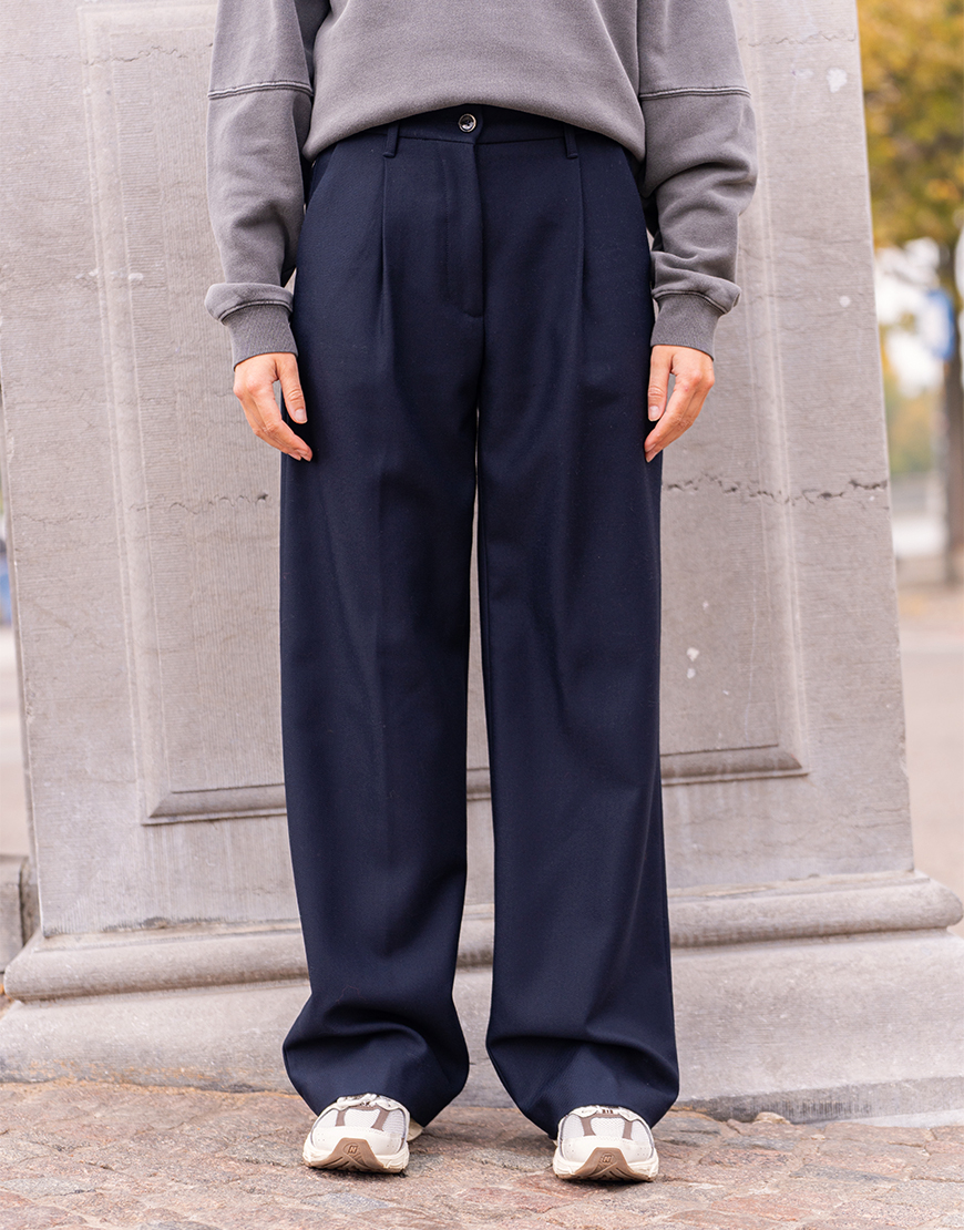 Deze Nine in the morning Blenda bandplooi pantalon in navy is een echte style secret waar je jarenlang plezier van hebt. De pantalon oogt wat meer nonchalant door de bandplooi en de iets stijvere stof. Wat een tof effect geeft. De broek heeft een mooie pasvorm, enkele platte bandplooi, steekzakken en klepzakken op de achterzijde. Deze mooie pantalon kun je eindeloos combineren.