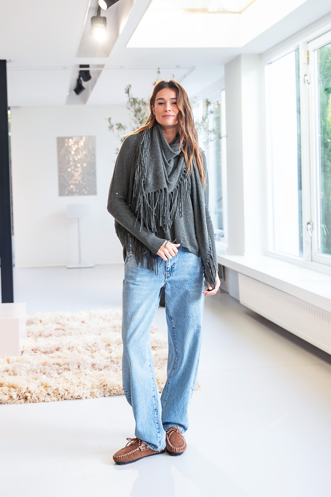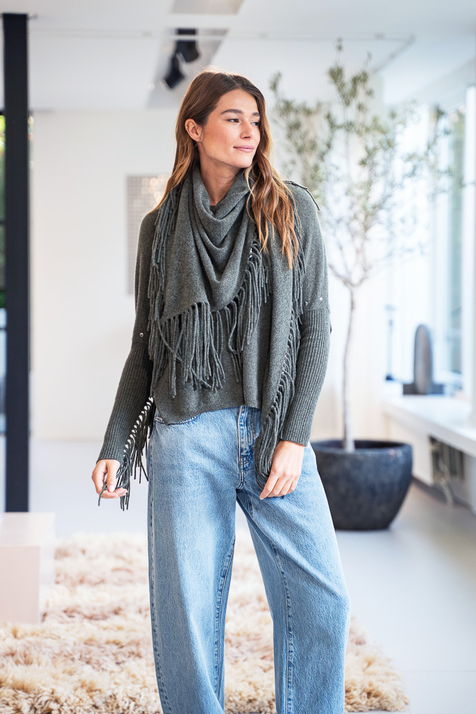 Deze Notshy fringe sjaal ash is een echte style secret. Tof om je looks en jassen mee af te stylen en natuurlijk heerlijk warm. Combineren kan natuurlijk met zo ongeveer alles, maar extra leuk met de bijpassende fringe trui.