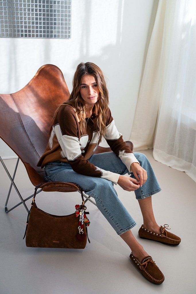 Dit Notshy vest Aarom camel ecru is by far een van onze favoriete items uit de collectie van Notshy. Past perfect bij de western trend van dit seizoen en we love it. Dit zachte wol cashmere vest is afgewerkt met studs en heerlijk zacht en warm. Gemaakt van een goede kwaliteit wol en cashmere welke lang mooi blijft.