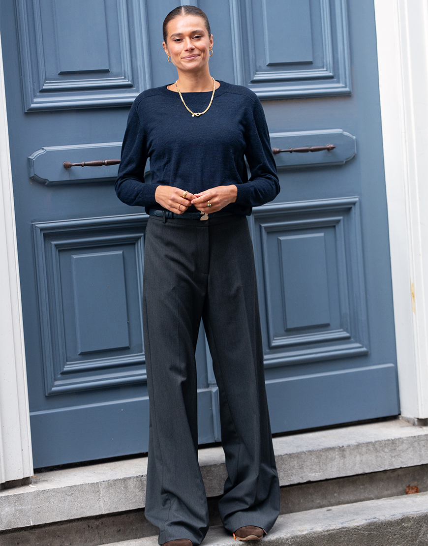 Deze RAE Lola pantalon is ieder seizoen weer een bestseller. Dit seizoen uitgevoerd in een mooie grijze melange. Deze mooie stijlvolle klassieke pantalon heeft steekzakken aan de zijkant en op de achterkant geen zakken. Door de stofsamenstelling draagt deze broek heerlijk en blijft deze lang mooi. Dit toffe merk bij Keep it secret store komt uit België en staat bekend om hun klassieke silhouetten met een moderne twist.