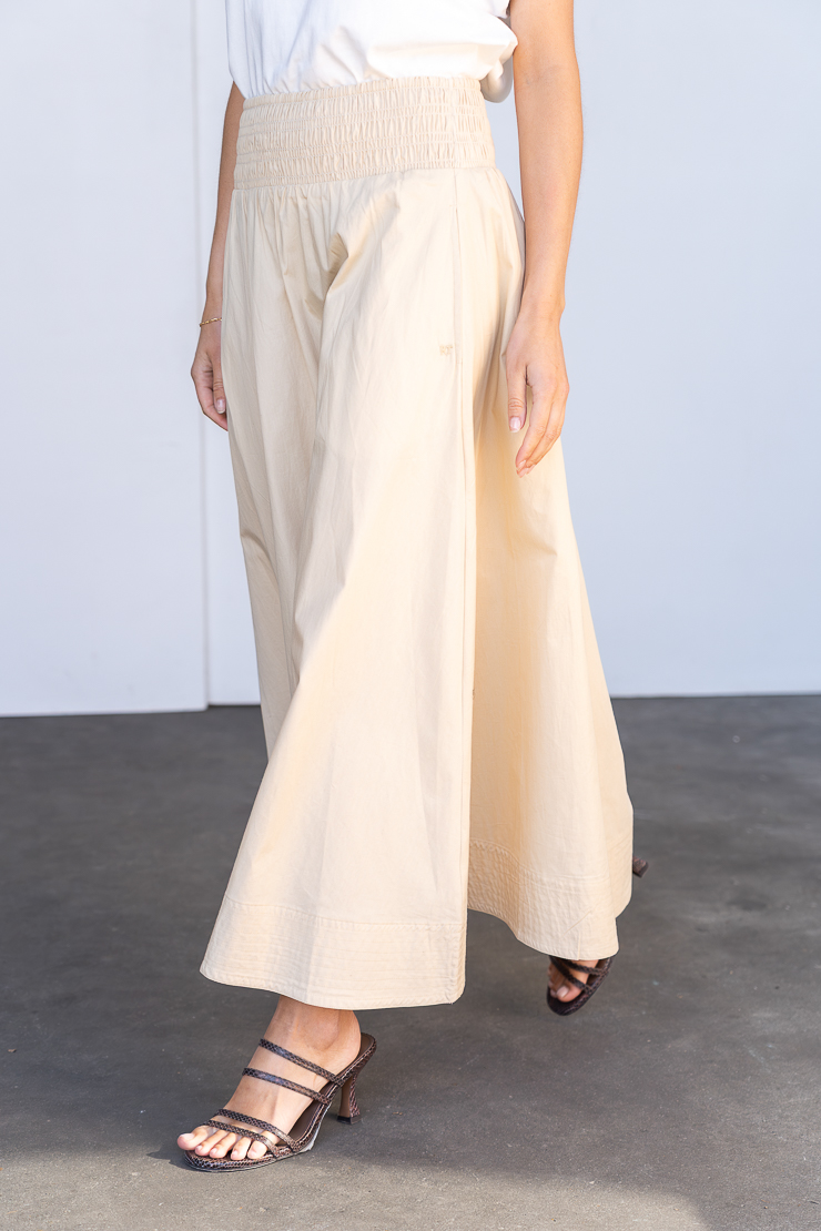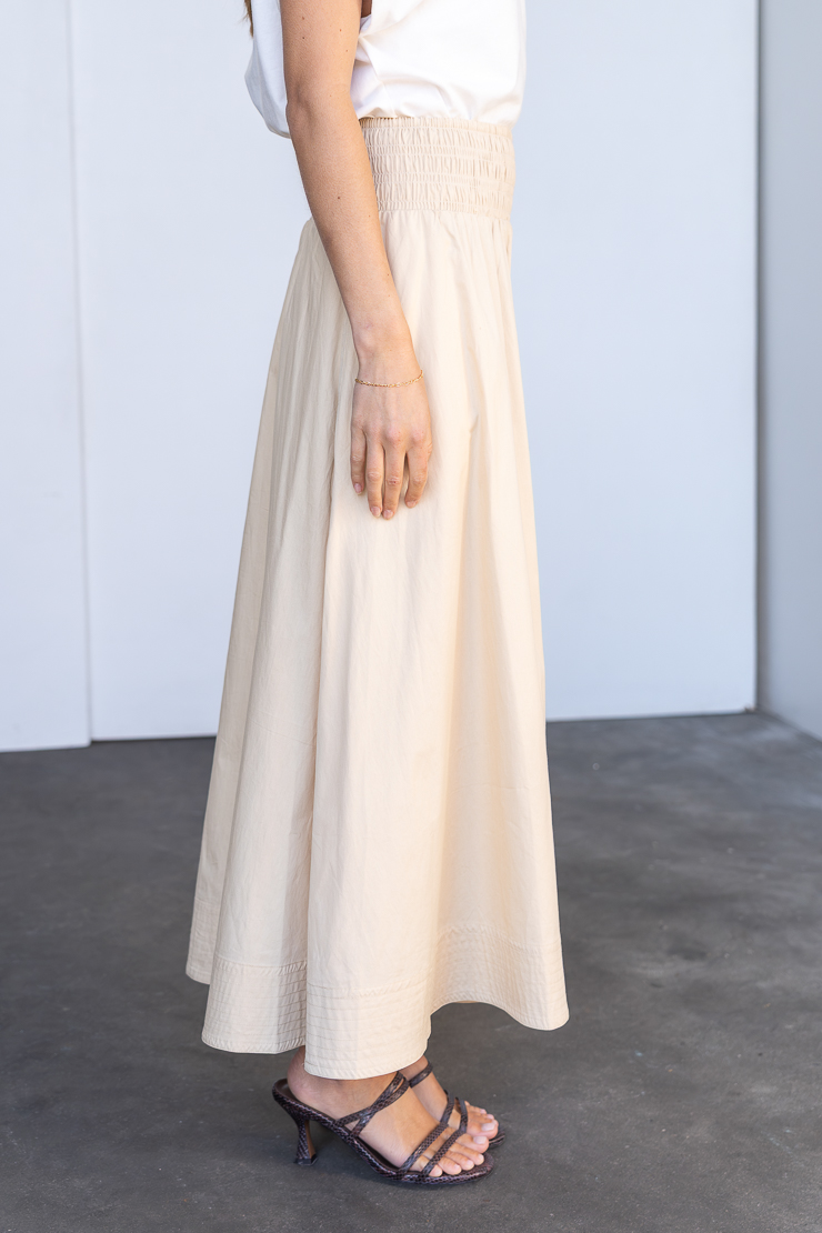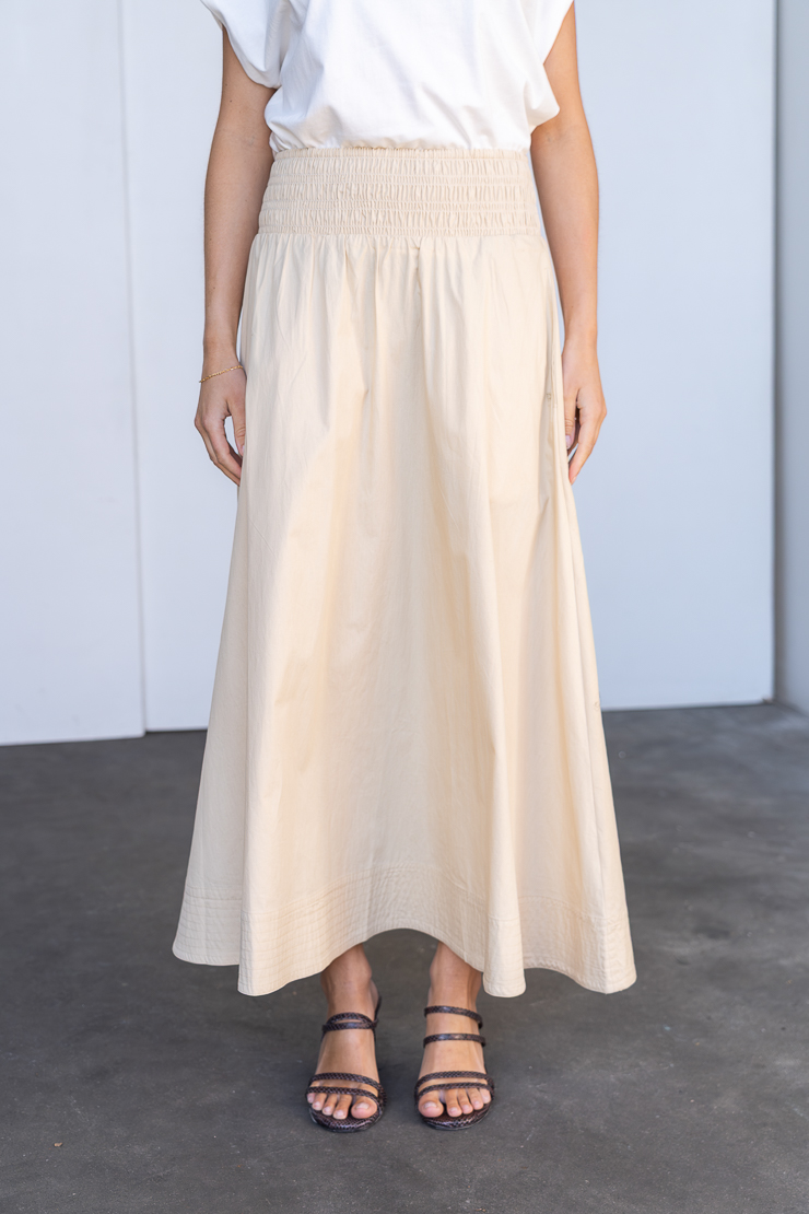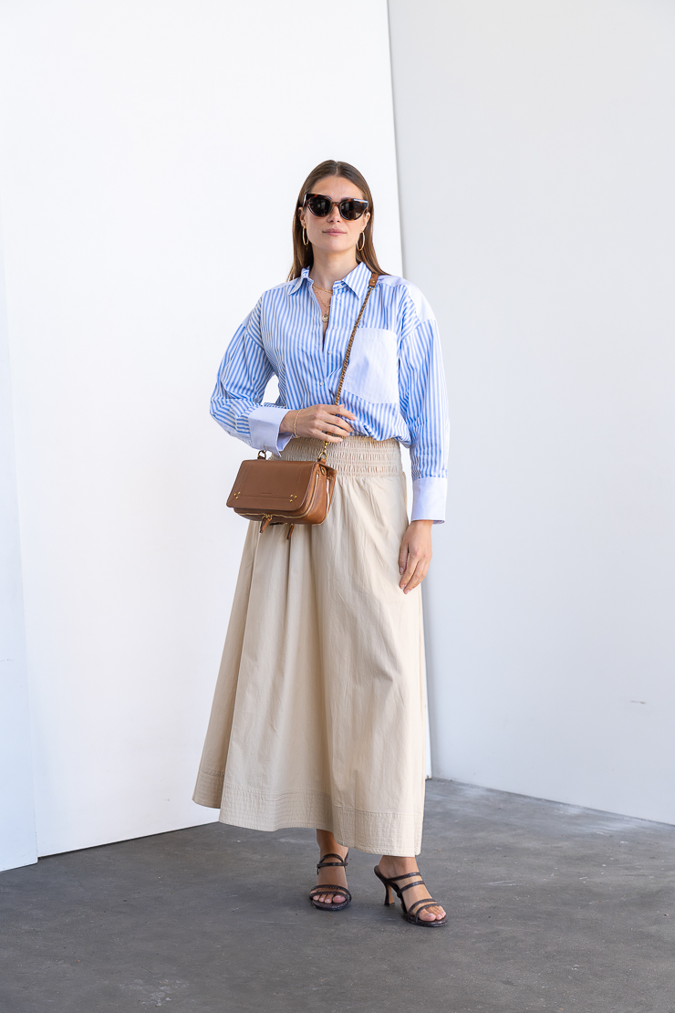Deze Ruby Tuesday Ilyssa long skirt hummus is een echte secret basic. Bruin tinten zijn de trend voor deze zomer. Combineer de poplin rok als set op de bijpassende top of met een tof shirt van Elite. De rok valt tot op de enkel en heeft elastische brede band.