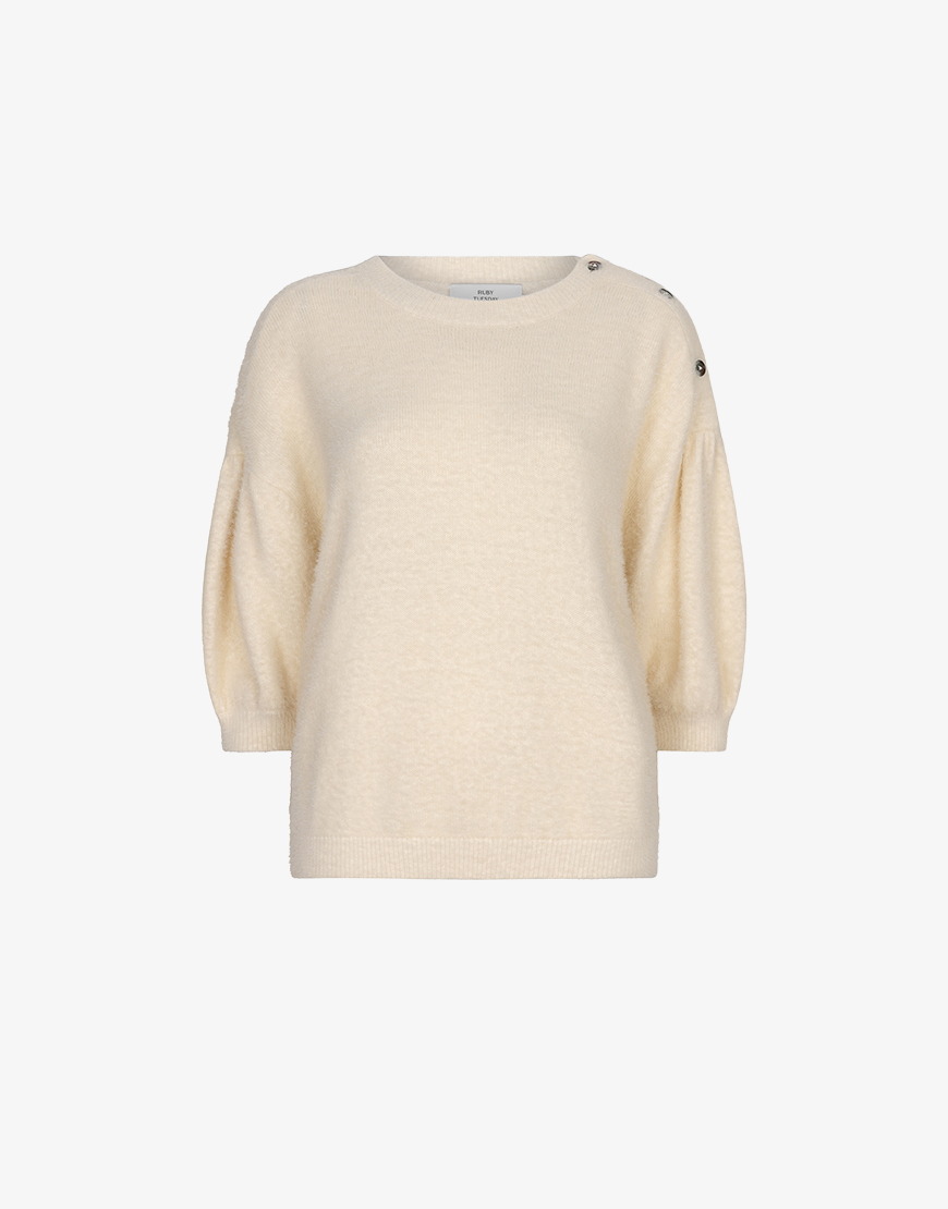 Deze Ruby Tuesday Vari fluffy knitted top ivory is een echte style secret. Deze mooie ecru dunne trui is heerlijk zacht en een fijn item voor het voorjaar en de koudere dagen in de zomer. Heeft verder niet veel nodig maar kun je zeker ook makkelijk combineren. De trui valt normaal van maat.