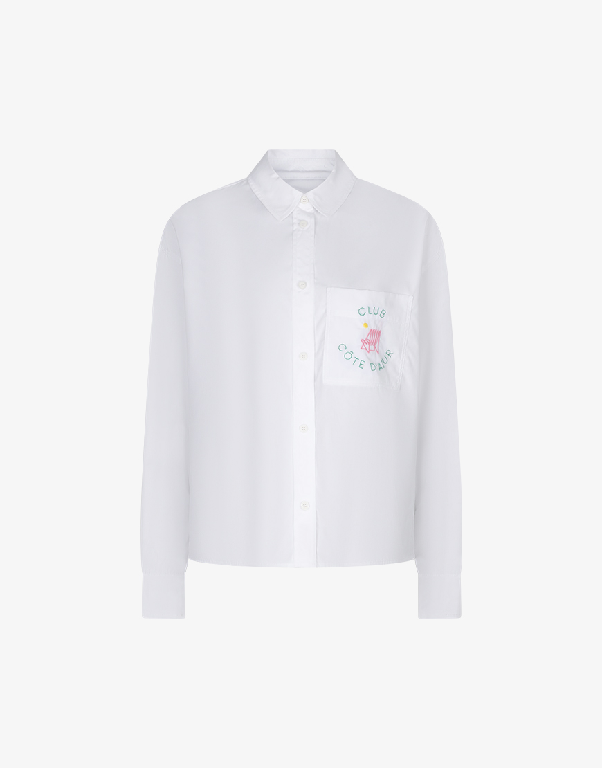 Deze Sacrecouer Andrea club blouse white is een echte style secret. Deze mooie witte 100% katoenen blouse heeft een toffe opdruk. Deze tijdloze blouse kun je eindeloos combineren. Heeft een nonchalante iets oversized fit en heeft een mooie gladde stof. Dit Franse merk staat bekend om hun mooie blouses en goede kwaliteiten. Wij vielen als een blok de mooie stoffen en goede pasvormen.