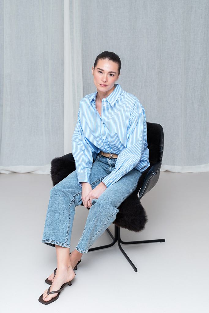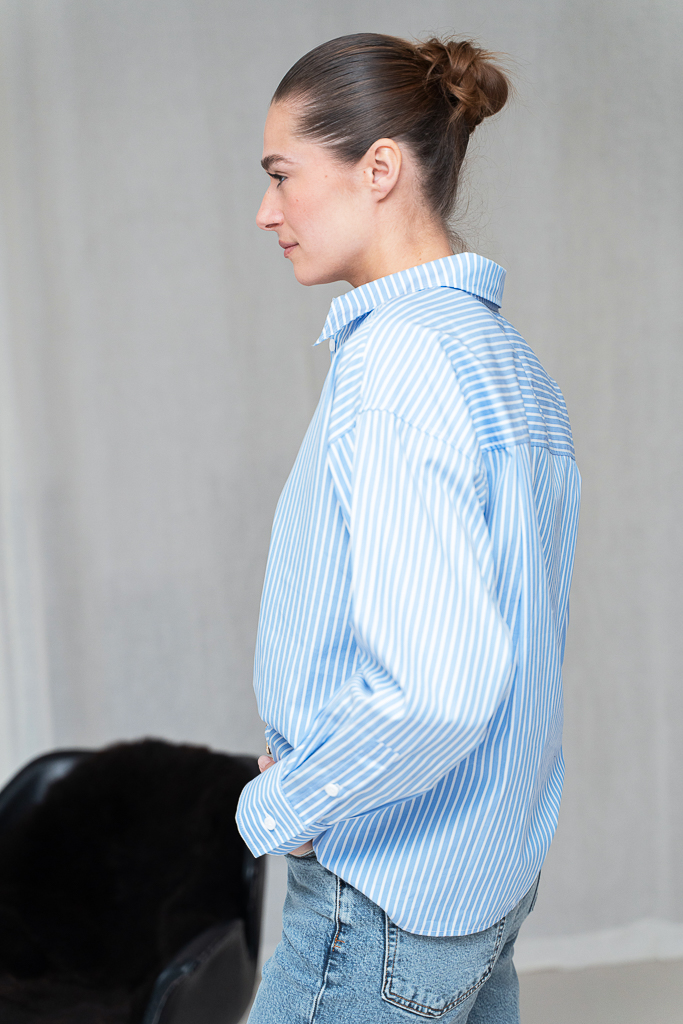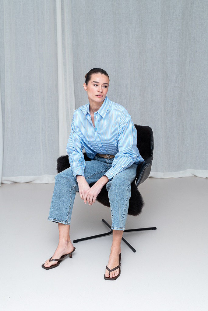 Deze Sacrecouer Billie mayfair stripe blouse blue is een echte style secret basic. Deze mooie gestreepte blauwe 100% katoenen blouse is een alltime bestseller van Sacrecoeur en zou iedere vrouw in haar kast moeten hebben. Deze tijdloze blouse kun je eindeloos combineren. Heeft een nonchalante iets oversized fit en heeft een mooie gladde stof. Dit Franse merk staat bekend om hun mooie blouses en goede kwaliteiten. Wij vielen als een blok de mooie stoffen en goede pasvormen.