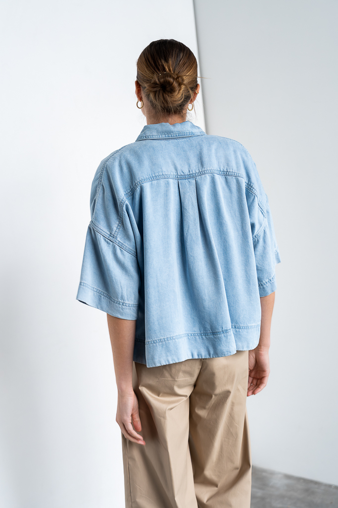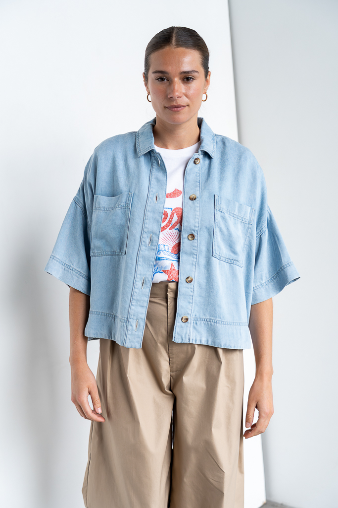 Deze Sacrecoeur Jules denim shirt indigo is een heerlijk item voor deze zomer. Deze jeans blouse geeft voor ons het ultieme zomer gevoel. De blouse valt ruim en past perfect op een jeans, groene broek of een toffe pantalon of short. Dit Franse merk staat bekend om hun mooie blouses en goede kwaliteiten. Wij vielen als een blok de mooie stoffen en goede pasvormen.