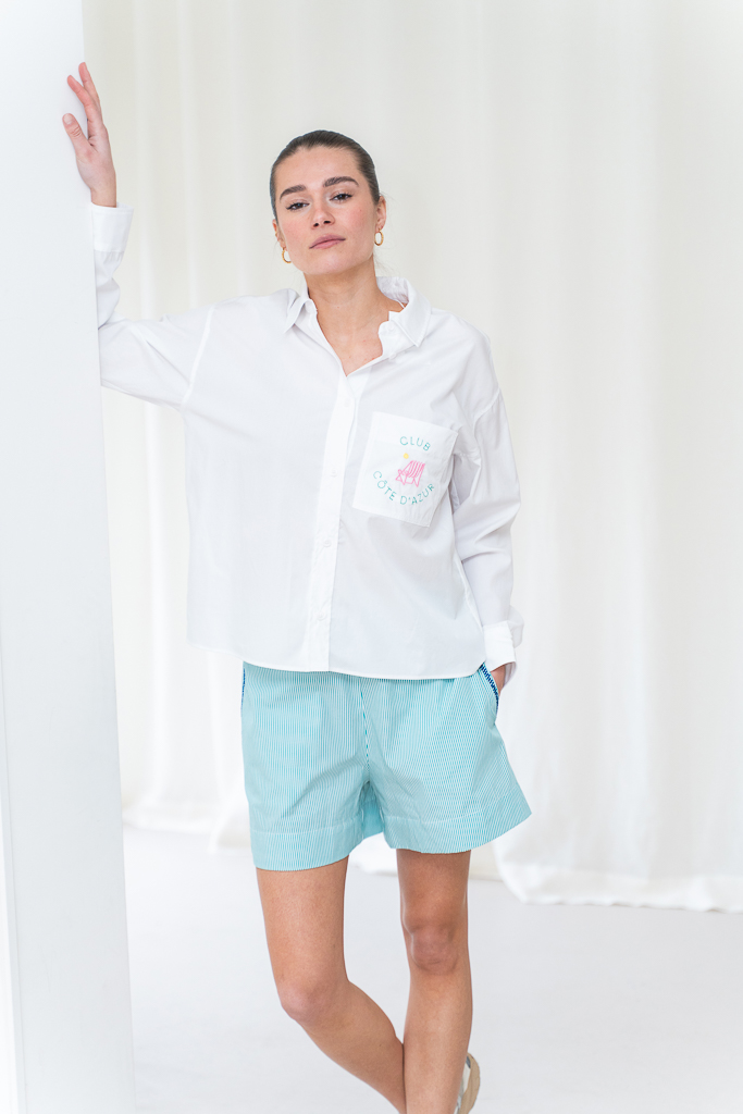Deze Sacrecouer Lilo inti short green is een echt style secret. Dit gestreepte short geeft voor ons het ultieme zomer gevoel. Het short past perfect als set bij de Cote d’Azur blouse maar is ook goed te combineren met andere items. Het heeft een elastische band en heeft steekzakken afgemaakt met een borduursel. Dit Franse merk staat bekend om hun mooie blouses en goede kwaliteiten. Wij vielen als een blok de mooie stoffen en goede pasvormen.