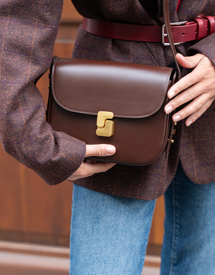 De Soeur Bellissima tas in het chocolade bruin t is jouw nieuwe go-to tas voor elke dag én avond. Gemaakt van kalfsleer leer met een zachte katoenen voering en afgewerkt met gouden hardware voor die luxe feel. Draag ‘m als crossbody of als schoudertas, de verstelbare strap maakt het makkelijk. De goudkleurige monogramsluiting en het grote voorvak geven ‘m net dat beetje extra. Binnenin vind je drie vakken en een ritsvak: compact, maar verrassend ruim.