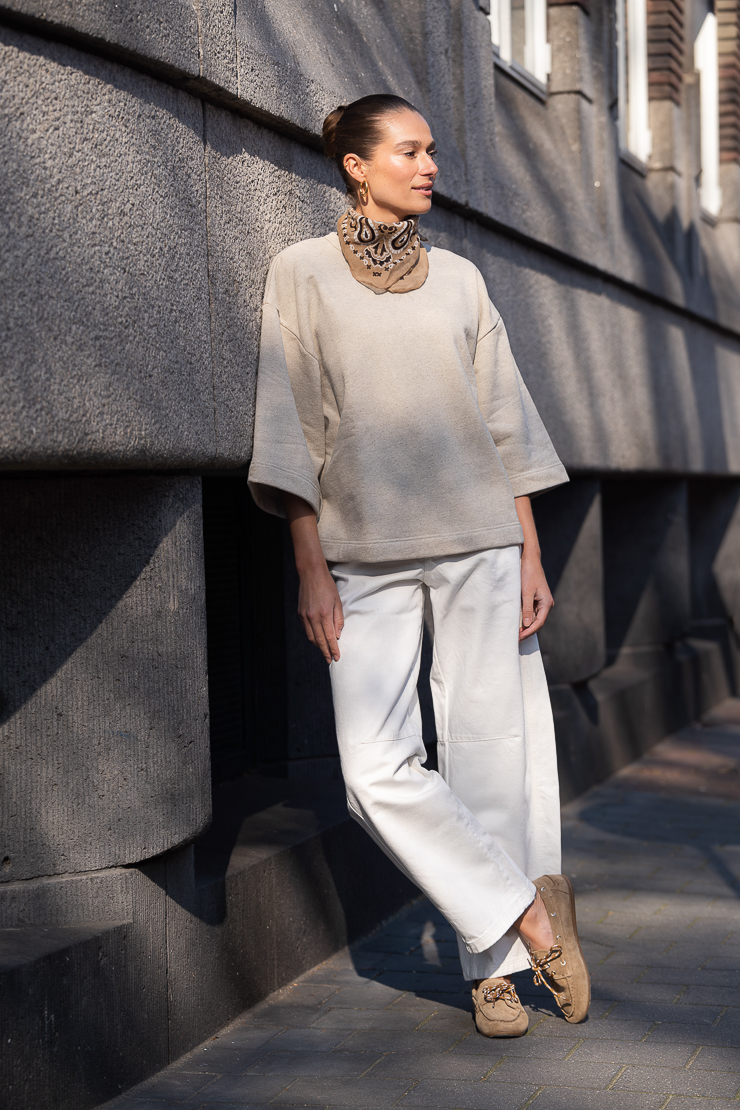 Deze Soeur Iksan sweater beige is een echte secret basic en een van onze favoriete items voor dit seizoen. Deze sweater in de mooie beige tint is een bestseller van Soeur. Is gemaakt van 100% katoen en heeft een wat ruimere pasvorm met een driekwart mouw. Tof op eigenlijke alle broeken voor een fijne casual look. Style je look af met een riempje en een paar toffe loafers of sneakers en je bent ready to go. Een echte basic waar je niet op uitgekeken raakt.