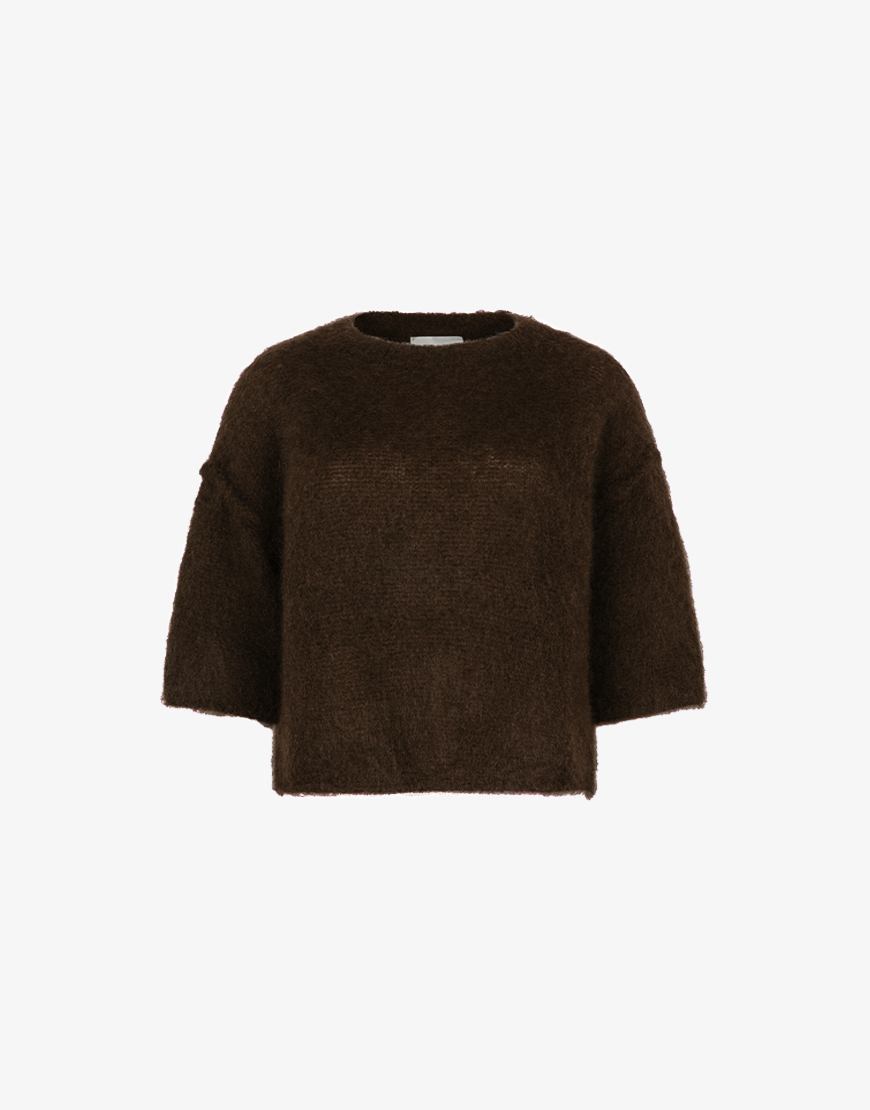 De Studio lavendel Celine mohair trui in het dark brown is de perfecte secret basic voor dit seizoen die je eindeloos kunt combineren. Dit nieuwe merk bij KISS Studio Lavendel heeft de heerlijkste knits. Het wordt gemaakt in Italië en is heerlijk zacht. Gemaakt van kid mohair, polyamide en elastaan, korte mouwen, ronde hals en normale pasvorm. Comfortabel en toegankelijk voor iedere gelegenheid, elegant en creatief. Combineer de trui op een mooie broek of toffe jeans en style af met een paar sneakers en tas.