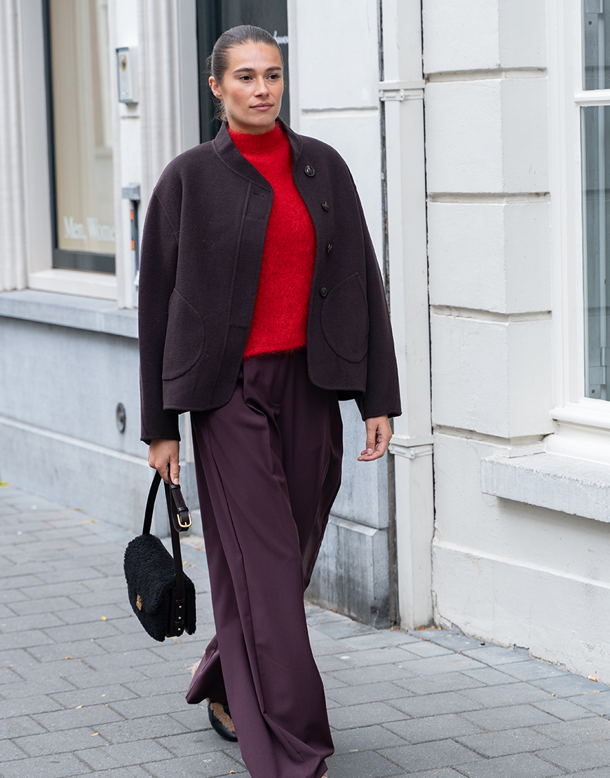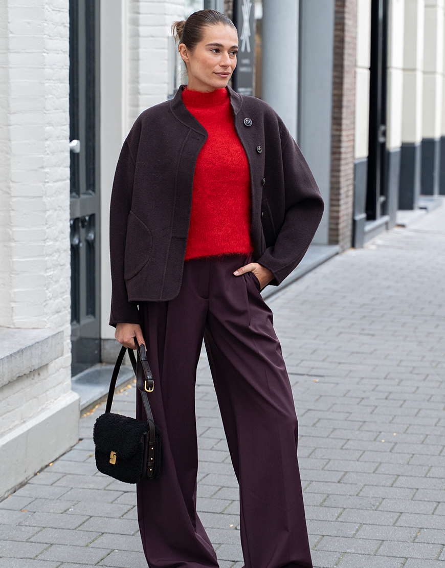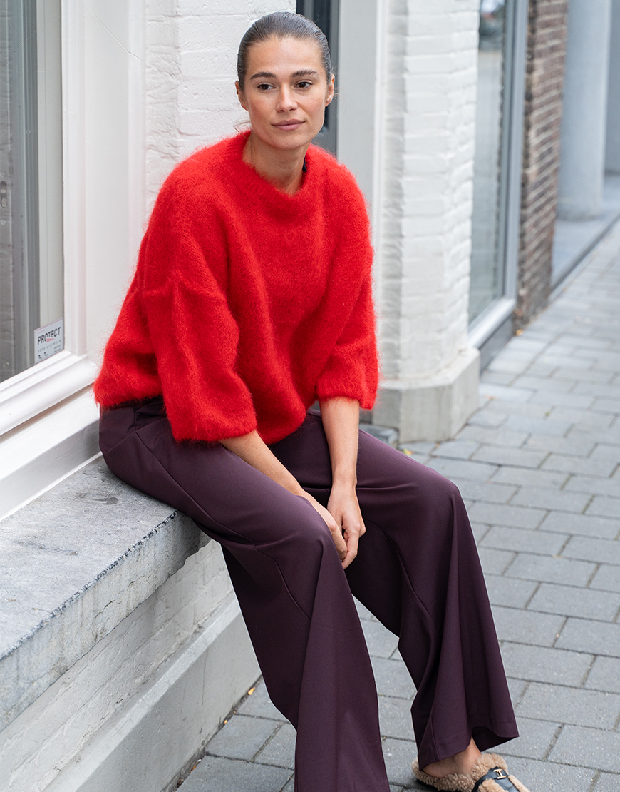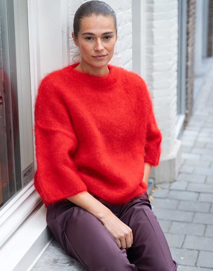 De Studi lavendel Celine mohair trui in het rood is de perfecte secret basic die je eindeloos kunt combineren. Dit nieuwe merk bij KISS Studio Lavendel heeft de heerlijkste knits. Het wordt gemaakt in Italië en is heerlijk zacht. Gemaakt van kid mohair, polyamide en elastaan, korte mouwen, ronde hals en normale pasvorm. Comfortabel en toegankelijk voor iedere gelegenheid, elegant en creatief. Combineer de trui op een mooie broek of toffe jeans en style af met een paar sneakers en tas.