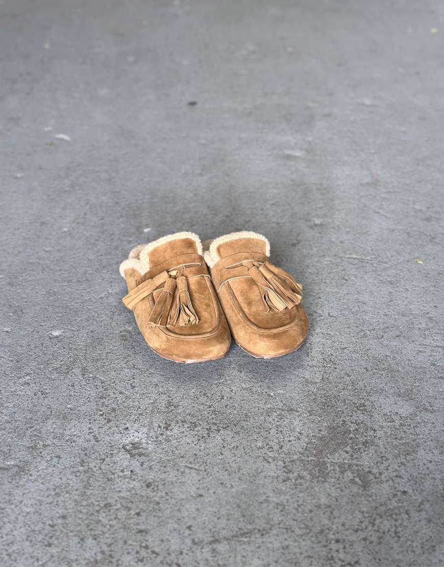 De Ariana instappers van Toral in een licht bruine kleur zijn een fijne mix van comfort en stijl. Gemaakt van zacht suède en gevoerd met warm schapenwol, ideaal voor thuis of onderweg. De subtiele tassel details en profielzool geven een casual, maar verzorgde look. Draag ze onder een relaxte jeans of een comfy knit set voor een fijne warme outfit.