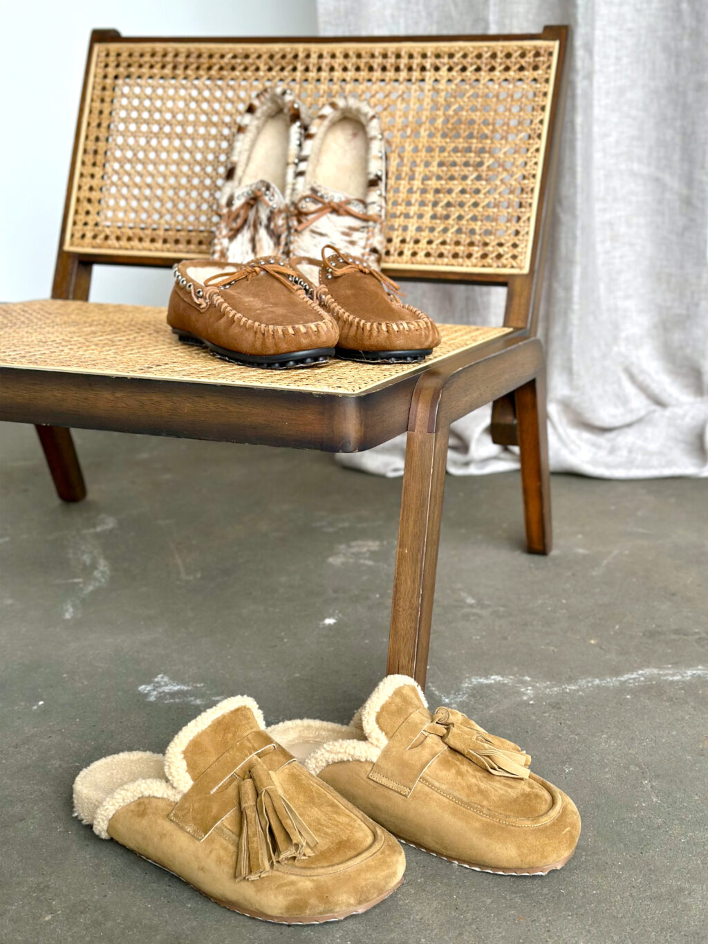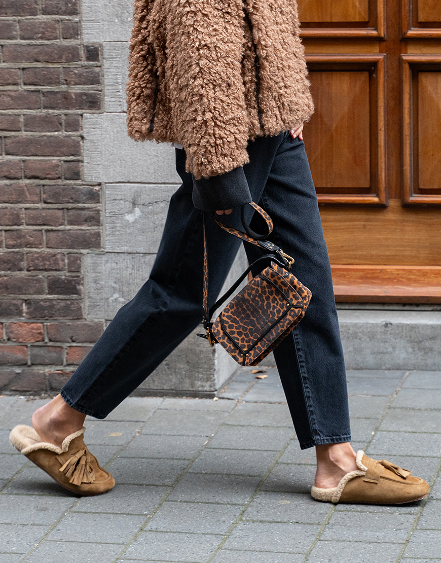Instapper van suede en schapelwol